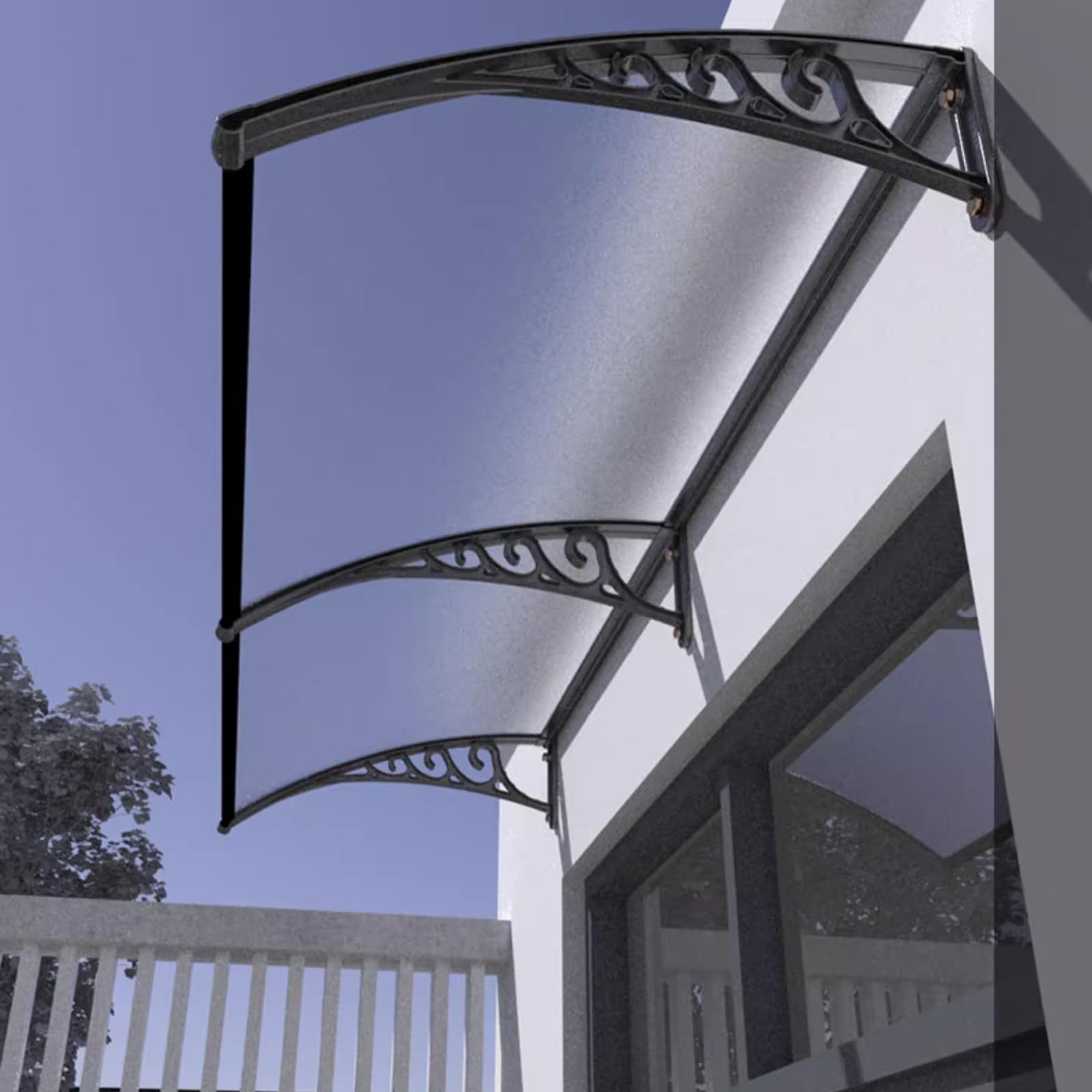 Regnet's immer rein? Dieses transparente Vordach schützt deine Haustür! Aus stabilem Polycarbonat - hält auch starkem Wetter stand. 90% Lichtdurchlässigkeit - hell und freundlich. Die gebogene Form sieht nicht nur gut aus, sondern leitet Wasser super ab. Hält bis zu 200kg Schneelast aus - absolut sicher. Einfach zu montieren - alles im Lieferumfang enthalten. Champagnerfarbener Rahmen - passt zu jedem Haus. Deine Besucher bleiben trocken und du hast mehr Komfort. Einfach klasse!