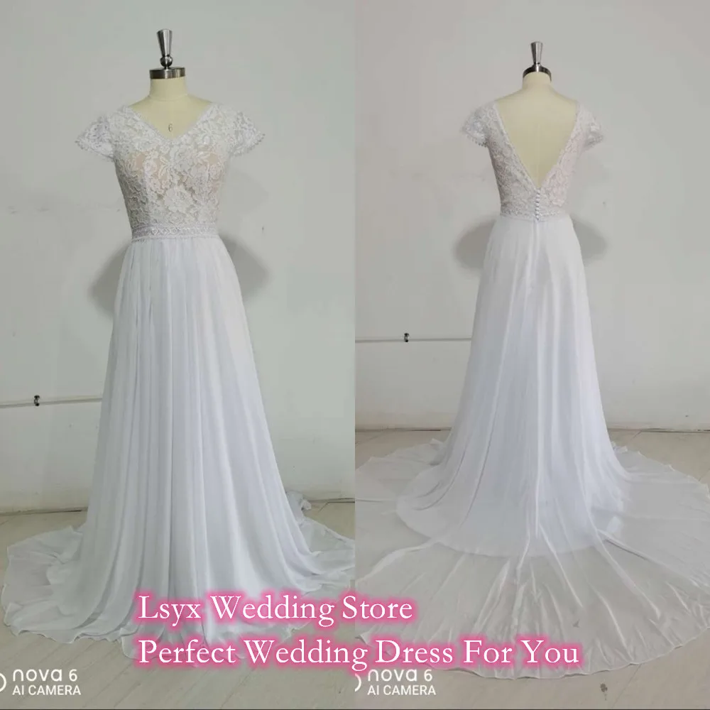 Winaiwi Damen Brautkleid Übergröße - Chiffon Spitze A-Linie - Mit Schleppe - Für Strand & Gartenhochzeit