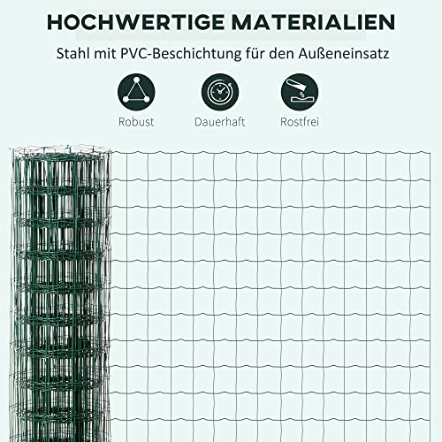Der klassische Gartenzaun! Dieser Wiltec Maschendrahtzaun ist 0,4m hoch und 10m lang, perfekt für Grundstücksbegrenzungen oder Tiergehege. Maschengröße 9x15cm, aus Stahl mit grüner PVC-Beschichtung - rostfrei und wetterbeständig! Verzinkter Drahtkern mit doppelsträngiger, gedrehter Konstruktion für extra Stabilität. Flexibel anpassbar für unebenes Gelände, leicht zu kürzen. Einfache Montage ohne Spezialwerkzeuge. Der grüne Farbton fügt sich dezent in die Natur ein. Robust, langlebig und vielseitig einsetzbar - ob für Garten, Hof oder Weide. Deine zuverlässige Lösung für klare Grenzen!