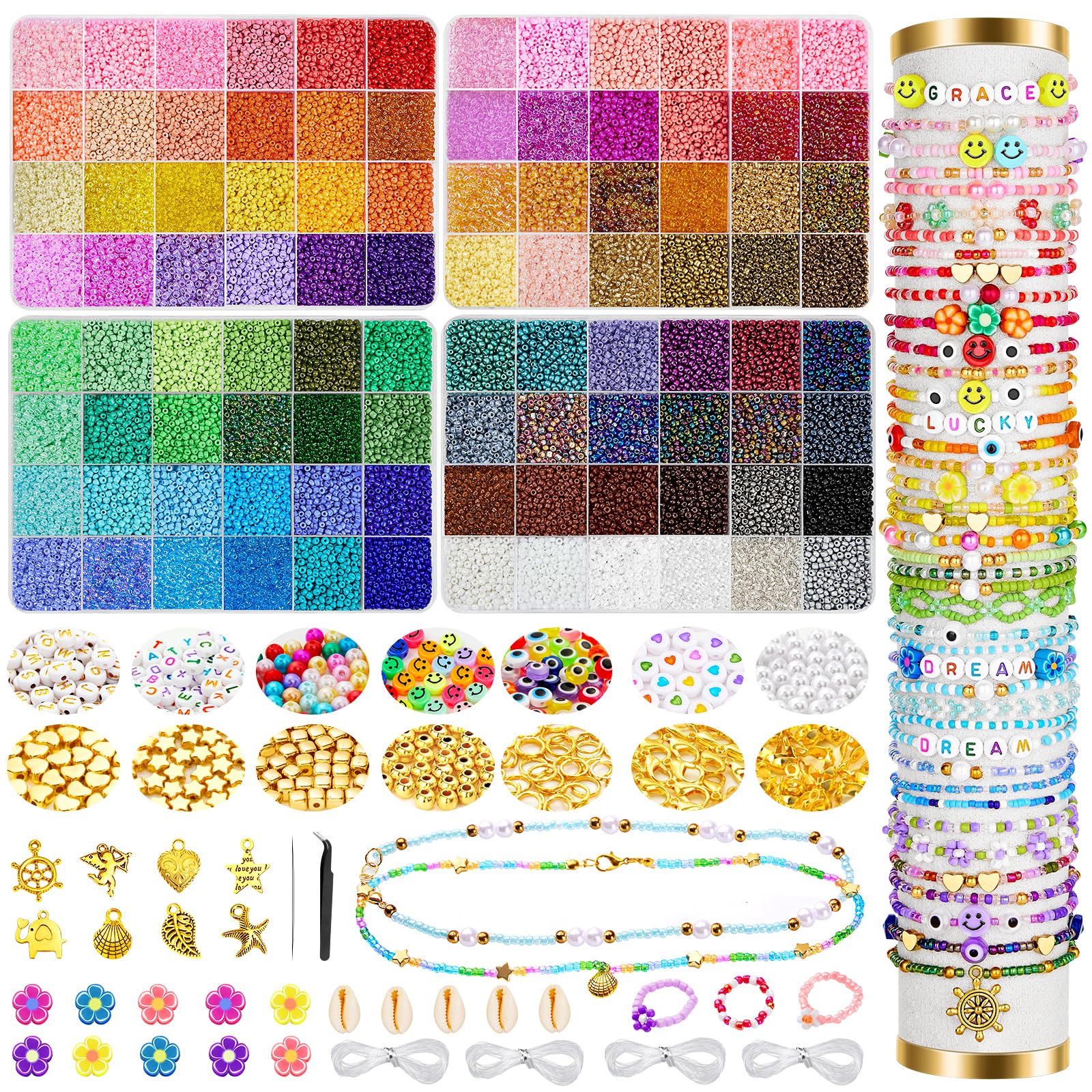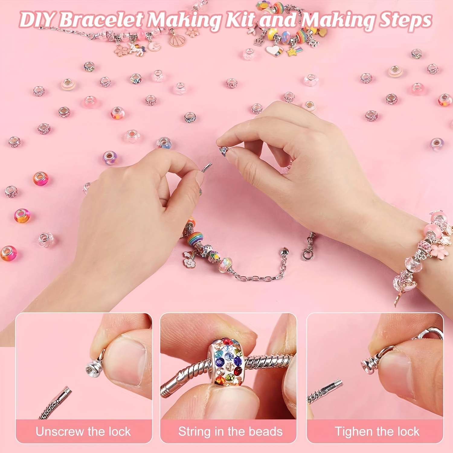 QH-Shop DIY Charm Armband Kit - 58 Teile Schmuck Bastelset Für Mädchen