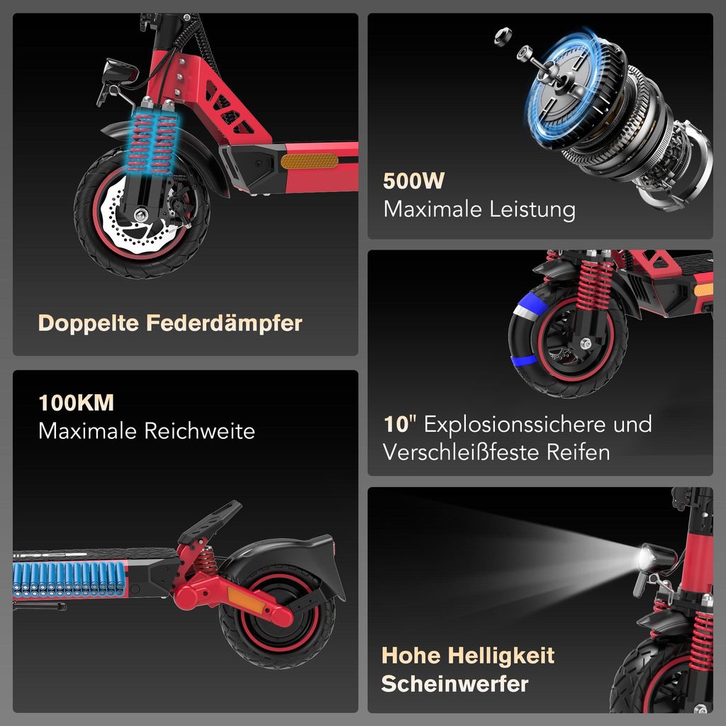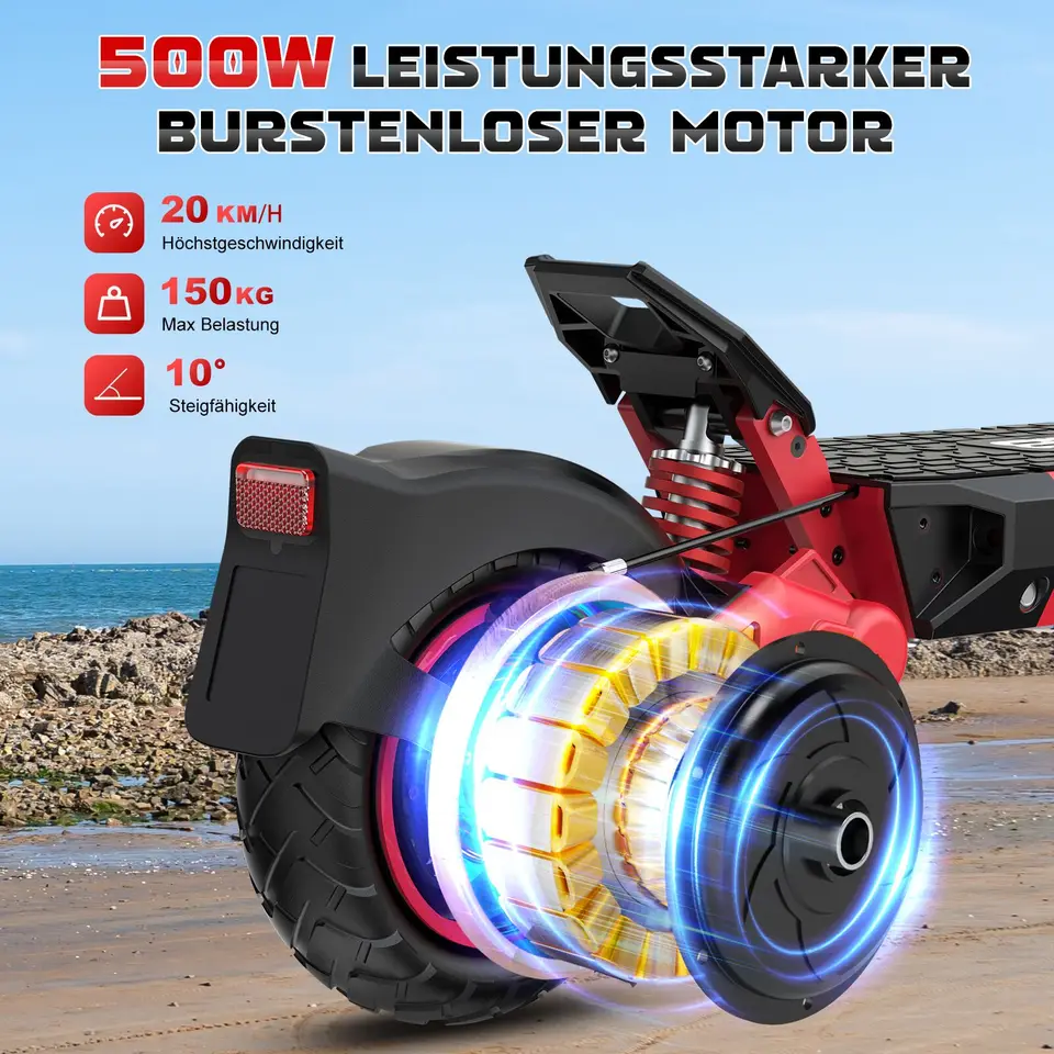 Wow, dieser RCB D5 Elektroroller ist einfach der Hammer! Mit offizieller Straßenzulassung (ABE) darfst du damit ganz legal auf öffentlichen Straßen fahren. Der 500W Motor bringt dich locker auf 20 km/h und mit der riesigen 27Ah Batterie kommst du bis zu 140km weit - je nachdem wie du fährst natürlich. Die 10 Zoll Reifen sind absolut plattfest und selbstreparierend, und die doppelte Stoßdämpfung macht selbst holprige Wege erträglich. Besonders cool: Du kannst ihn per App steuern und das LED-Display zeigt dir alle wichtigen Daten an. Wenn du nicht fährst, klappst du ihn einfach zusammen - dann ist er nur noch 118cm lang und super easy zu transportieren. Mit Frontscheinwerfer und Rücklicht bist du auch bei Dunkelheit sicher unterwegs. Perfekt für den Stadtverkehr oder kleine Ausflüge!