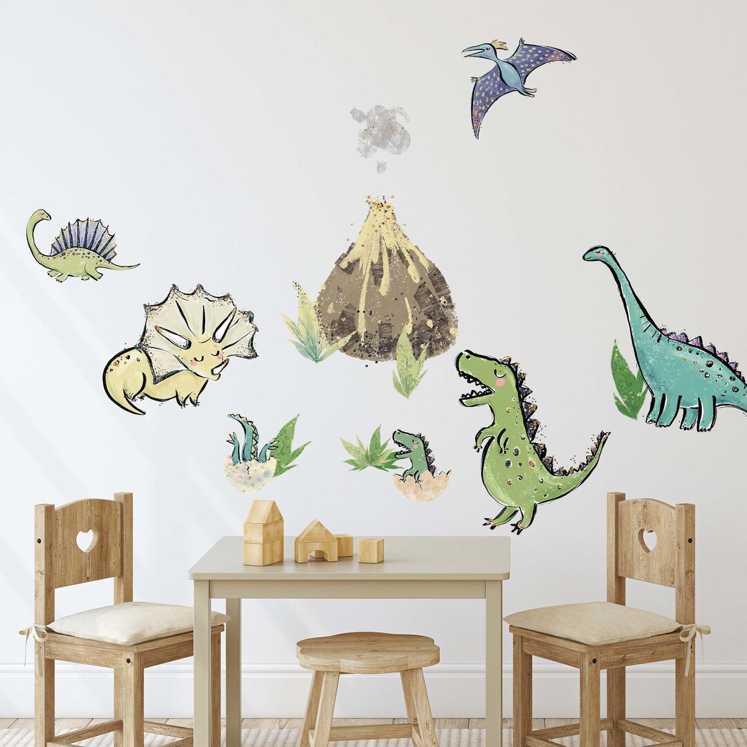 Verwandle das Kinderzimmer in eine Dino-Welt! Diese süßen Dinosaurier-Wandtattoos in 60x30cm sind super einfach anzubringen. Aus hochwertigem PVC-Material - rückstandsfrei wieder entfernbar und wasserfest. Einfach die Schutzfolie abziehen und auf glatte, saubere Wände drücken - keine Werkzeuge nötig! Komplettset mit 3 verschiedenen Dino-Motiven, die zusammen ein 120x70cm großes Bild ergeben. Perfekt für Jungen-Zimmer, Babyzimmer oder Spielzimmer. Die matte Oberfläche sieht aus wie gemalt - aber ohne Farbgeruch und Sauerei! Wichtig: Nur auf glatten, staubfreien Wänden anbringen. Frisch gestrichene Wände 14 Tage trocknen lassen. Mach deinem Kind eine Freude und hol die Urzeit ins Zimmer! Einfach bestellen, aufkleben und staunen - die Dinos kommen!