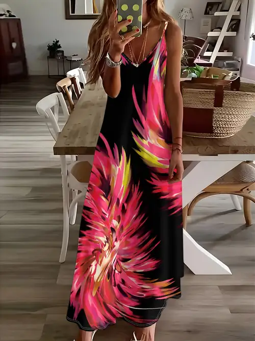 Traumhaft schönes Sommerkleid für besondere Anlässe! Dieses Maxikleid in A-Linie schmeichelt jeder Figur. Mit romantischem Blumendruck, der durch exklusiven Druck lebendig wirkt. Der V-Ausschnitt betont dein Dekolleté, die ärmellose Form zeigt deine Arme. Besonders hübsch: Der Rüschensaum und Spitzenapplikationen für einen verspielten Look. Aus pflegeleichtem Polyester - knitterarm und formstabil. Erhältlich in S, M, L, XL. Perfekt für festliche Anlässe, Dates oder wenn du dich einfach mal besonders weiblich fühlen willst. Kombinierbar mit Sandalen oder High Heels - du siehst einfach immer perfekt aus!