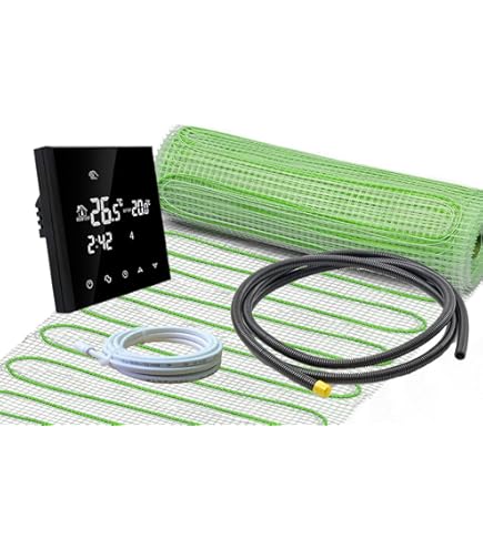 Brrr, kalte Füße? Mit dieser Flexithermo Fußbodenheizung gehört das der Vergangenheit an! Das Komplett-Set mit 1,5x0,5m Heizmatte (200W/m²) und digitalem 7-Tage-Thermostat macht deine Räume kuschelig warm. Perfekt für Badezimmer, Wohnräume oder Wintergärten. Die fixierten Heizleiterabstände sorgen für gleichmäßige Wärmeverteilung. Passt unter fast alle Bodenbeläge - Fliesen, Parkett, Laminat, Teppich, Vinyl oder Kork. Einfache Installation mit selbstklebendem Gewebe und 5m Anschlusskabel. TÜV-geprüft und ohne Elektrosmog - deutsche Qualität vom Feinsten! Im Lieferumfang ist alles dabei, was du brauchst: Heizmatte, Thermostat, Bodenfühler, Sensor und Montagematerial. Mach dein Zuhause zur Wohlfühloase und genieße wohlige Wärme von unten!