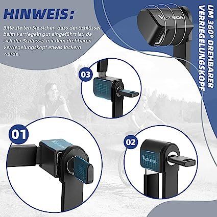 Die mitgelieferte Halterung ist super praktisch: Einfach am Rahmen befestigen und das Schloss ist immer griffbereit. Kein lästiges Rumtragen mehr! Das kompakte Design macht es ideal für unterwegs - ob zur Arbeit, Schule oder beim Stadtbummel.
