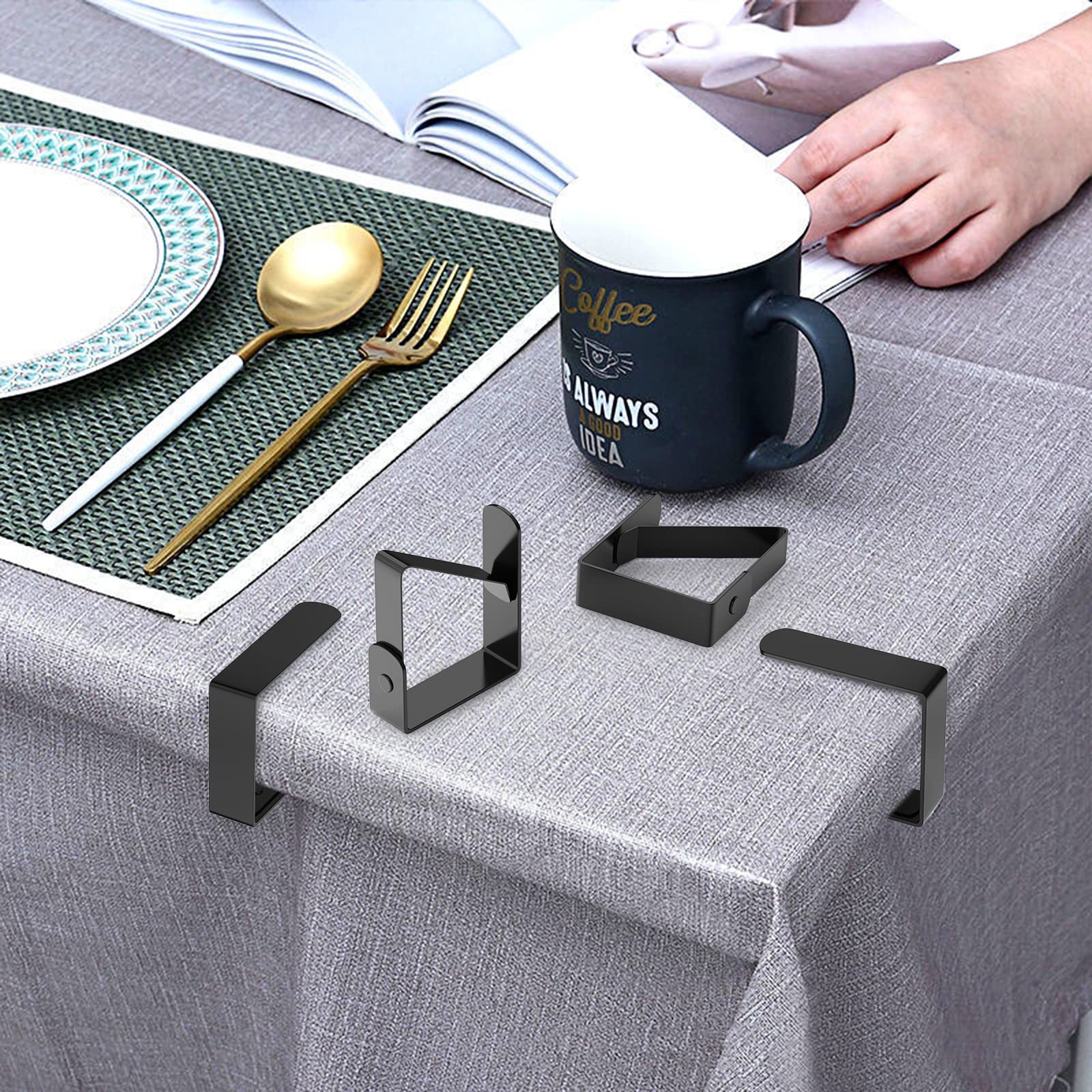Schluss mit verrutschten Tischdecken! Diese 8 praktischen Tischklammern von Emwel halten deine Tischdecke fest an Ort und Stelle - egal ob bei Familienfeiern, im Garten oder im Restaurant. Aus robustem Edelstahl gefertigt und in schickem Schwarz lackiert, sehen sie nicht nur gut aus, sondern sind auch super langlebig. Mit den Maßen 5x4 cm passen sie selbst an dickere Tischplatten und halten bombenfest. Einfach die Tischdecke über den Tisch legen und die Klammern am Rand befestigen - schon bleibt alles da, wo es hingehört! Perfekt bei Wind im Freien oder wenn mal wieder jemand an der Tischdecke zieht... Das 8er-Set reicht für die meisten Tische und die Aufbewahrung ist kein Problem. Ob Geburtstag, Hochzeit oder gemütliches Abendessen - mit diesen Klammern wird deine Tischdekoration zum echten Hingucker, der sicher sitzt!