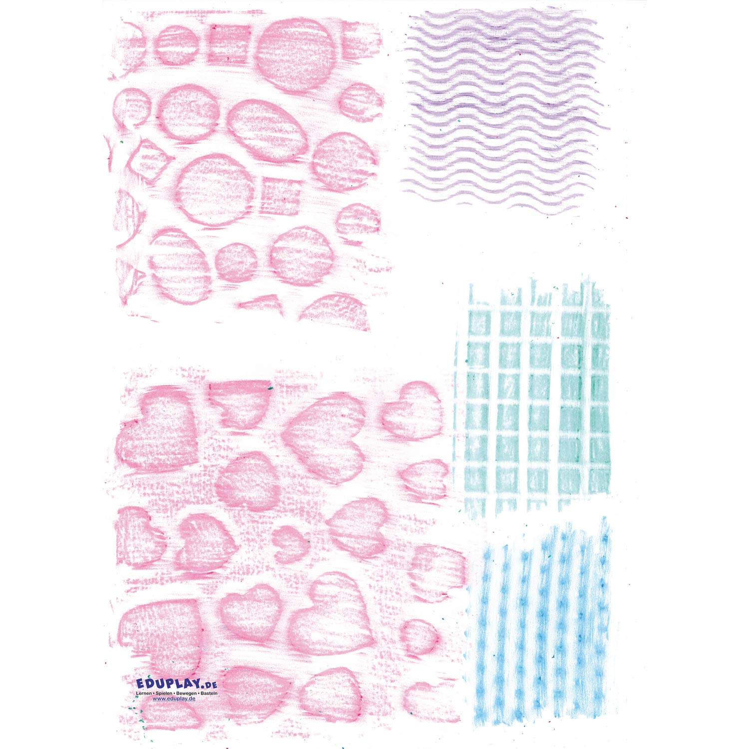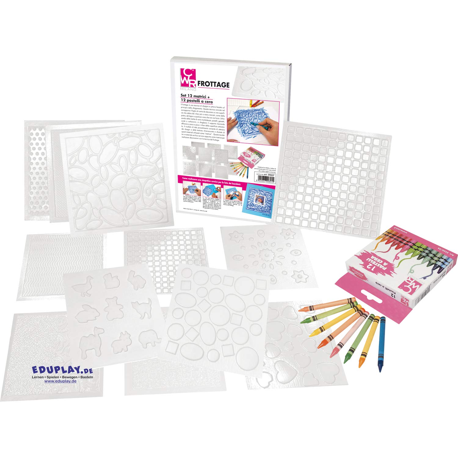 EDUPLAY Frottage Set - 12 Kunststoff-Fliesen & 12 Wachsmalstifte Für Kreative Kinder