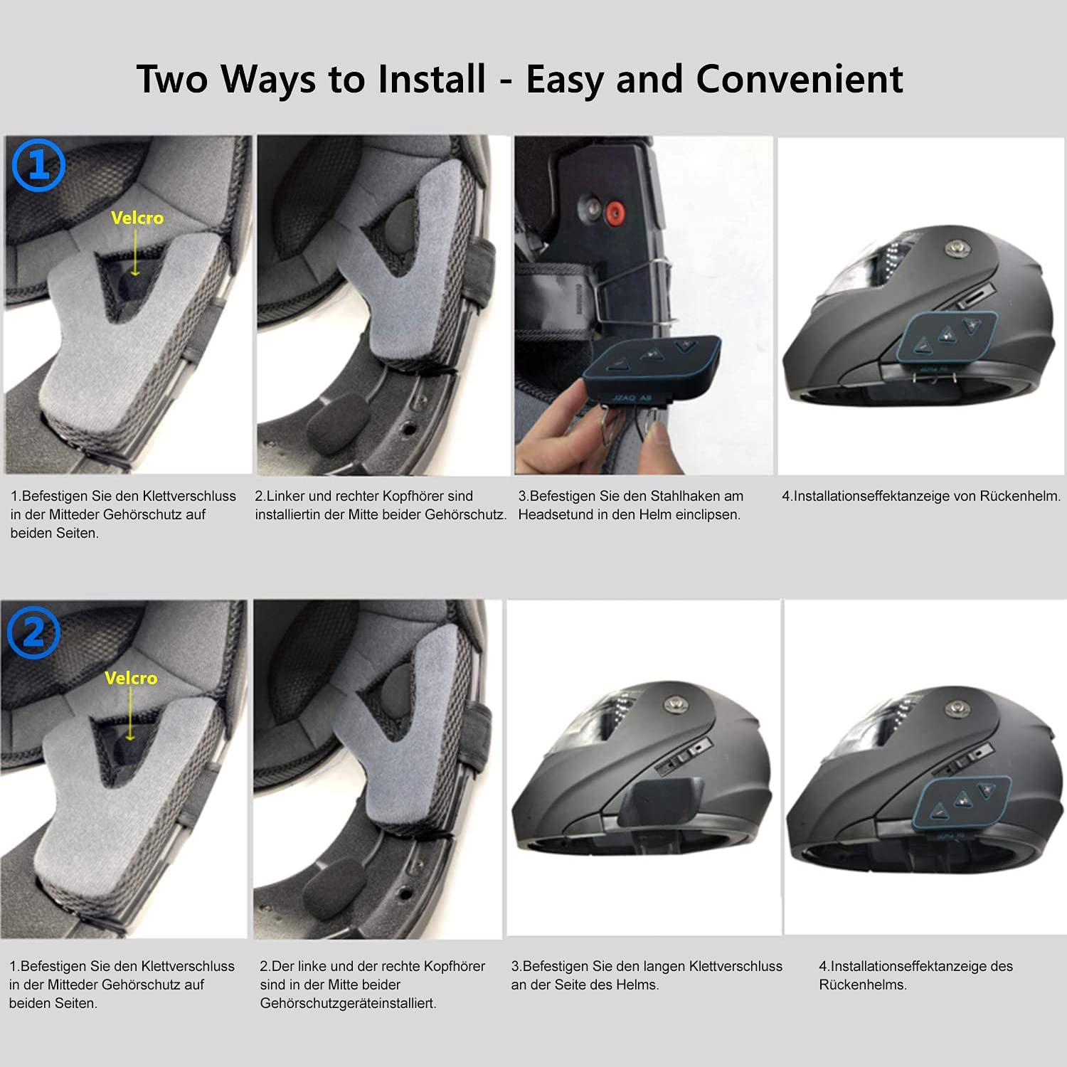 Hey Motorrad-Fan! Dieses Bluetooth Headset für den Helm ist ein echter Game-Changer! Mit Bluetooth 5.0 für stabilen, klaren Sound - keine Aussetzer mehr in Kurven. Der ultraflache Design (nur 0,32 Zoll dick!) drückt nicht am Ohr, selbst nach Stunden noch bequem. Das beste Feature: Eingebaute 3000mAh Powerbank! Kann dein Handy aufladen, wenn der Akku schlapp macht - genial auf langen Touren. IPX7 wasserdicht, also kein Problem bei Regen. Der Windgeräusch-Unterdrückung ist top, dein Gesprächspartner hört dich klar, selbst bei Tempo 130. Lautstärke lässt sich easy anpassen, damit du auch bei Fahrtwind alles verstehst. Einfache Installation mit Klettverschluss - passt in die meisten Voll- und Halbvisierhelme. Mit dem Federstahl-Clip hält's bombenfest. Ladezeit ca. 2-3 Stunden, dann bis zu 180 Stunden Musik oder 1000 Stunden Standby! Perfekt für Motorrad, Ski, Snowboard - alles, wo du freihändig kommunizieren willst. Inklusive USB-Kabel, 8 Klettstreifen, Anleitung. Tipp: Lautsprecher nah ans Ohr setzen (aber nicht zu nah!) für besten Sound. Wenn Lücken bleiben, einfach etwas Baumwolle stopfen gegen Windgeräusche. CE & FCC zertifiziert - sicher und geprüft. Probier's aus, bereu's nicht!