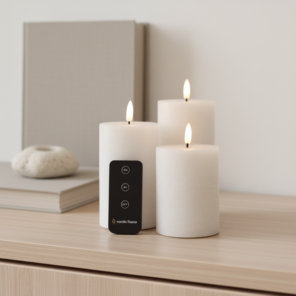 Diese LED-Kerzen im Glas sehen einfach täuschend echt aus! Das 3er Set kommt in verschiedenen Größen - 10cm, 12,5cm und 15cm hoch, alle mit 7,5cm Durchmesser. Aus Echtwachs gefertigt fühlen sie sich an wie echte Kerzen, sind aber komplett flammenlos und damit absolut sicher. Keine Brandgefahr, kein Rußen, kein Tropfen - perfekt für Haushalte mit Kindern, Haustieren oder für unbeaufsichtigtes Brennen. Mit warmer, flackernder Flamme die gemütliches Ambiente zaubert - oder wähl das stetige Licht für ruhigere Momente. Die Helligkeit ist in 5 Stufen einstellbar und der Timer lässt sie automatisch nach 2, 4, 6 oder 8 Stunden ausgehen. Bequem per Fernbedienung steuerbar - musst nicht mal vom Sofa aufstehen! Jede Kerze benötigt 2 AA-Batterien (nicht im Lieferumfang). Ob für romantische Dinner, entspannende Badewannen-Momente oder als festliche Deko - diese Kerzen sind immer die richtige Wahl. Machen jeden Raum sofort gemütlicher - ganz ohne Risiko und Aufwand!
