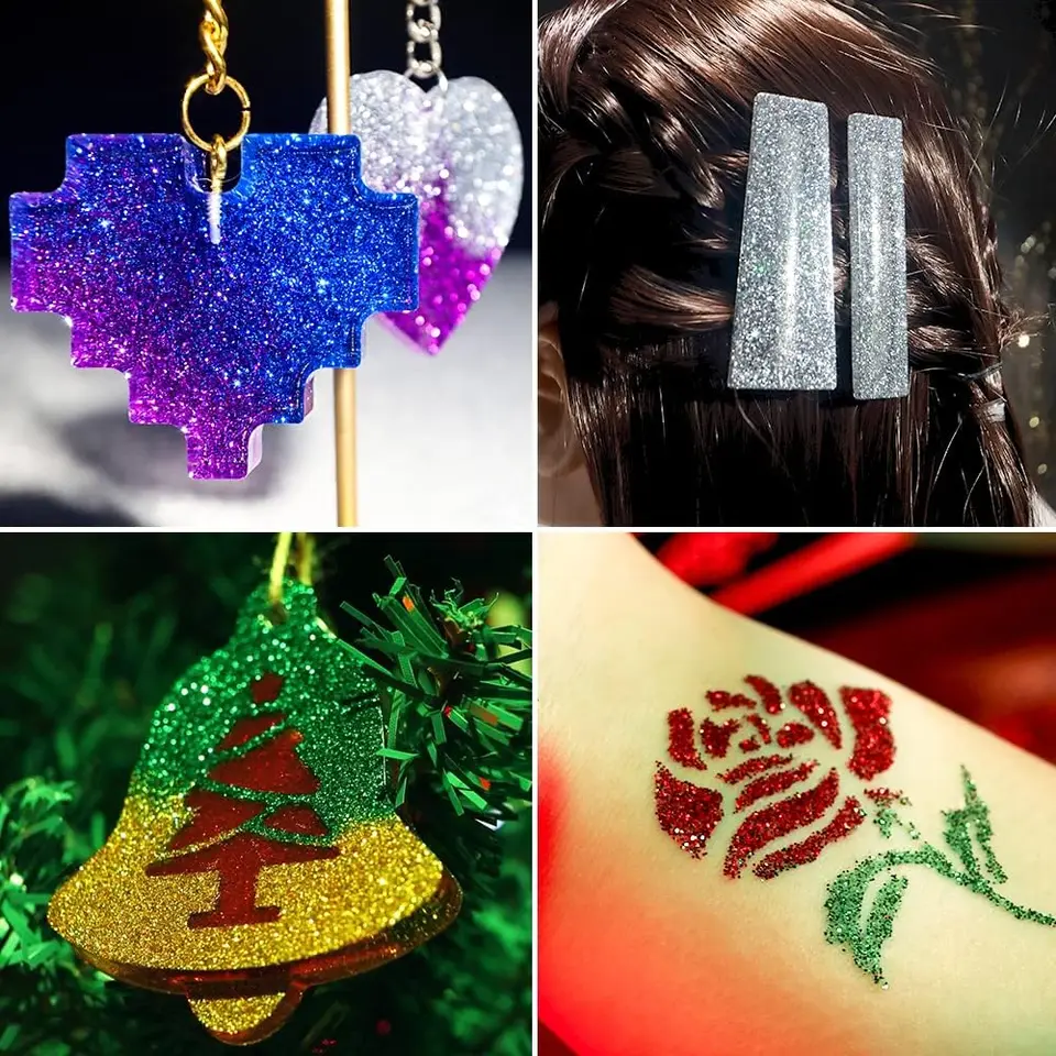 Bist du bereit für funkelnde Projekte? Dieses Glitzer-Set mit 12 holographischen Farben bringt deine Kreativität zum Strahlen! Jede Farbe kommt in praktischen 18g-Fläschchen mit kontrollierter Ausgabe - kein lästiges Verschütten. Aus ungiftigem PET-Material, sicher für Haut und Kinder. Perfekt für Nageldesign, Gesichts-Make-up, Harzkunst, Schleim oder Grußkarten. Der holographische Effekt fängt das Licht wunderschön ein und verleiht jedem Projekt magischen Glanz. In einer stabilen Aufbewahrungsbox ordentlich verstaut. Einfach auftragen und staunen - deine Kreationen werden alle Blicke auf sich ziehen! Für Party, Karneval oder einfach nur zum Verschönern des Alltags.