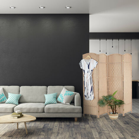 En.casa Paravent Dorotea 4-teilig - Raumteiler 160x170cm Rattanoptik