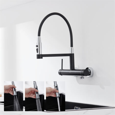 Wandarmatur Küche Edelstahl - Mit Spritzpistole & 360° Drehbarem Auslauf