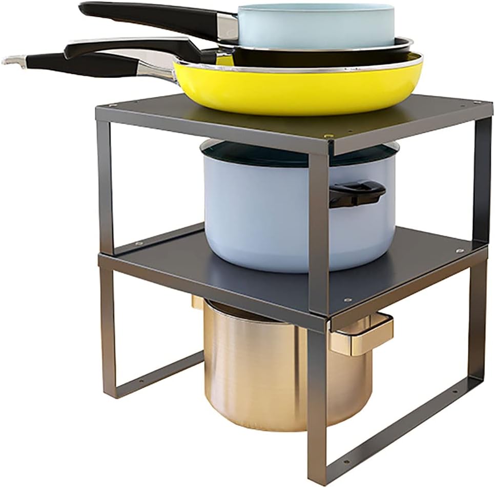 LIANTRAL Küchen-Organizer 2er Set - Stapelbare Regale Aus Bambus & Metall, 29,7cm Breite