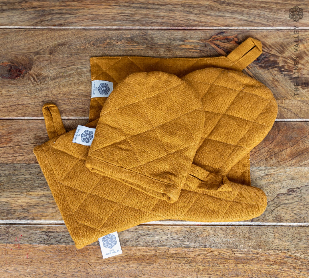 4-teiliges Küchenhandschuhe Set Türkis - Hitzebeständige Topflappen & Backhandschuhe
