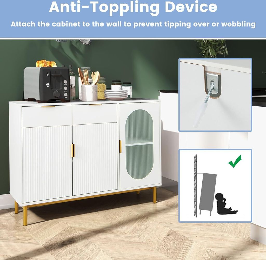 KOMFOTTEU Küchenschrank 75x35x95cm Weiß - Sideboard Mit 2 Türen & Offenem Fach