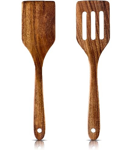 Olivenholz Küchenset 2-teilig - Natürliche Pfannenwender - Jedes Stück Ein Unikat