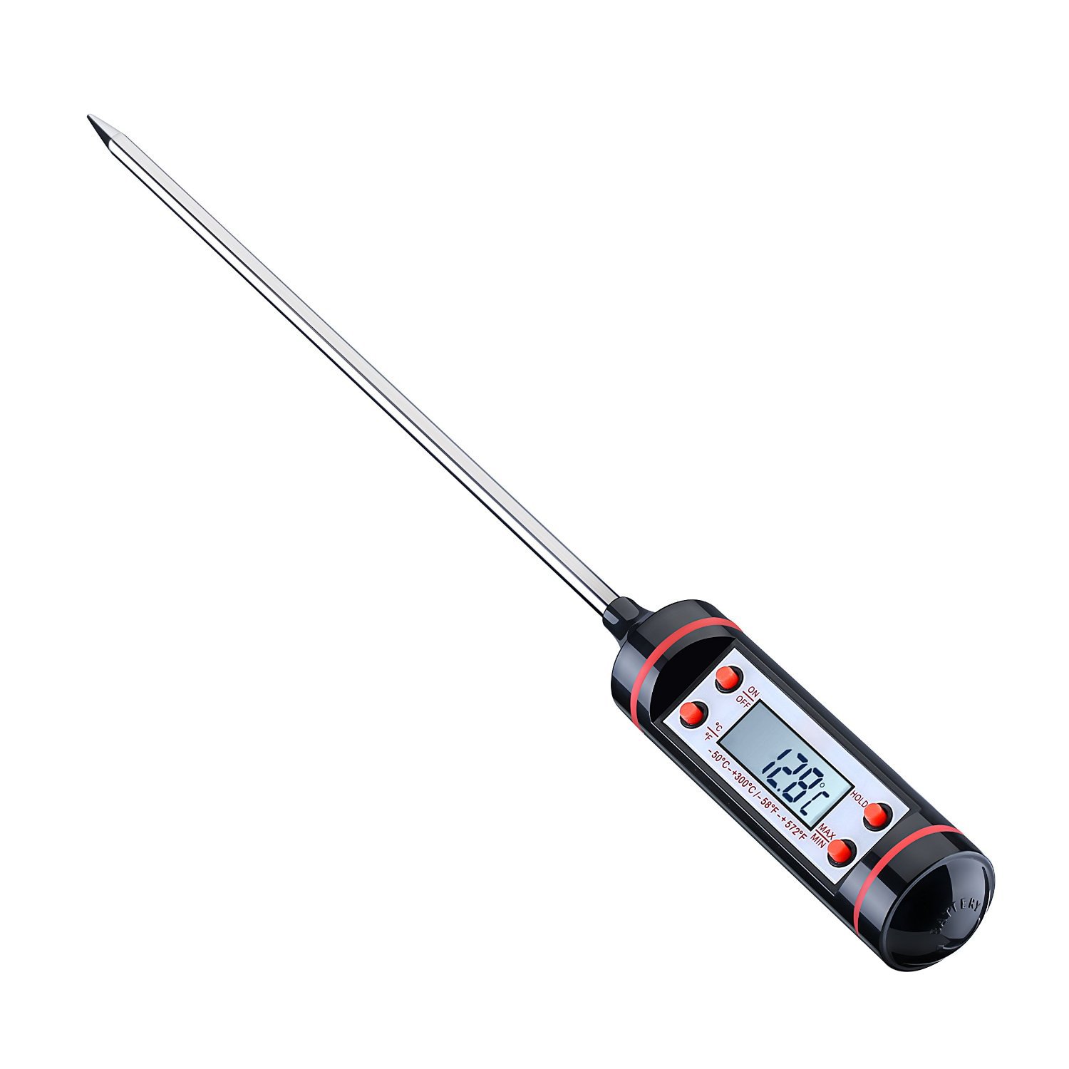 Perfekte Ergebnisse in der Küche! Dieses 2er-Set digitale Thermometer von Oujilet macht dich zum Profi-Koch. Misst präzise von -50°C bis 300°C mit ±1,5°C Genauigkeit. Die extra lange Sonde (14,6 cm) aus Edelstahl ist ideal für Fleisch, Flüssigkeiten und mehr. Mit Hold-Funktion, Max/Min-Anzeige und °C/°F Umschaltung. Inklusive Schutzhülle für unterwegs. Einfache Bedienung - einfach einschalten und messen. Für Grill, Backofen und Küche unverzichtbar!
