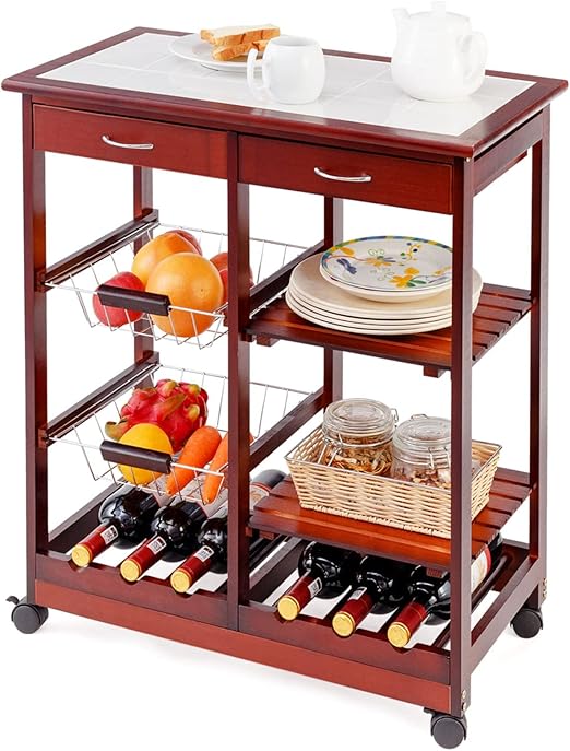 Giantex Klappbarer Küchenwagen 136cm - Servierwagen Mit Rollen Und Schubladen