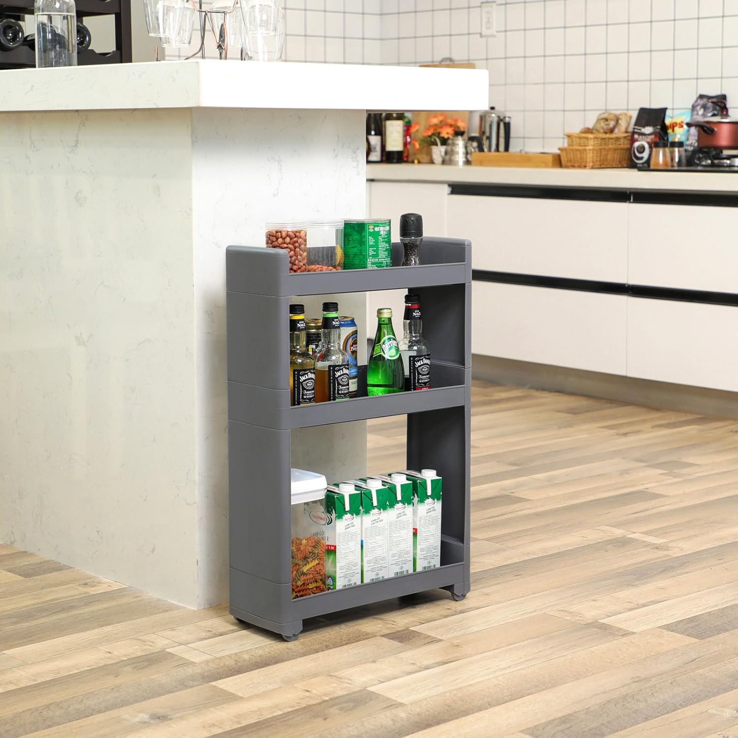 FANTASK Küchenwagen Schmal 13cm - 4-stöckiger Servierwagen Mit Rollen Für Nischen & Ecken