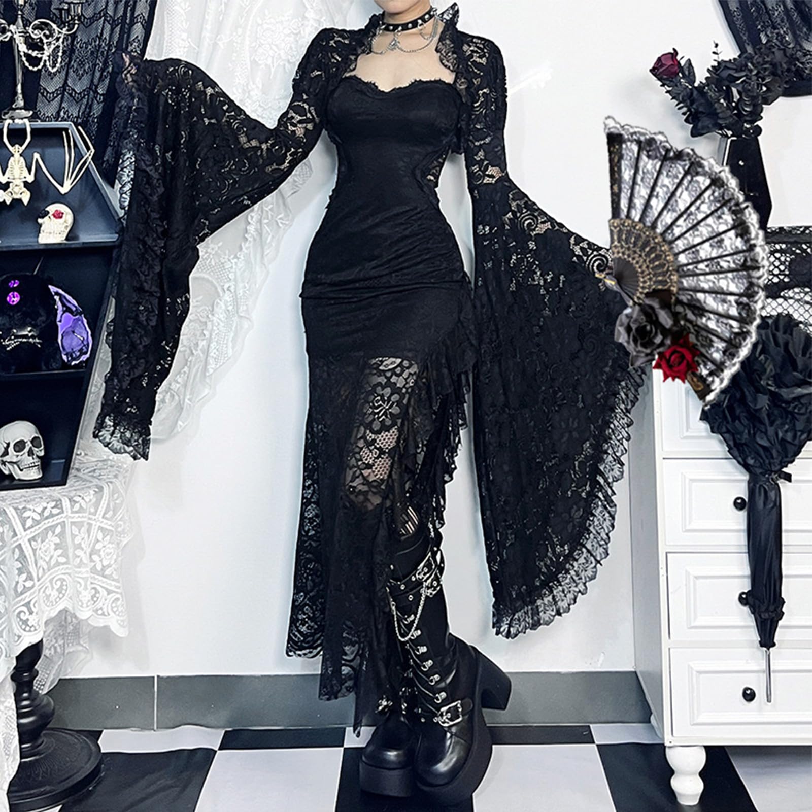 Schwarzer Spitzen-Fächer - Gothic Tanzrequisite Für Cosplay Und Halloween