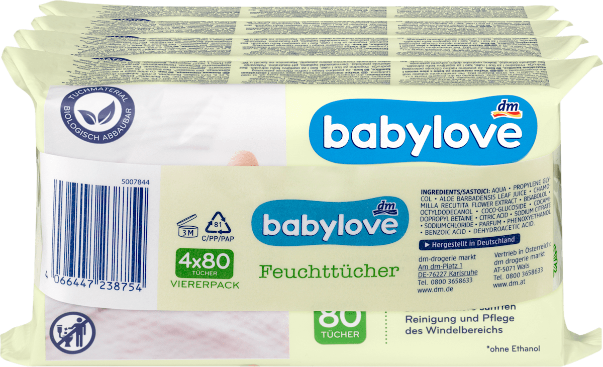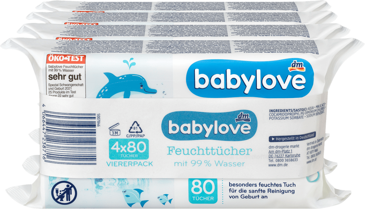 Sanfte Pflege für zarte Babyhaut! Diese Babylove Feuchttücher sind angereichert mit beruhigender Aloe Vera und Kamille - perfekt für den empfindlichen Windelbereich. pH-hautneutral und ohne Alkohol, Parabene oder Paraffine. Besonders reißfest und extra weich für eine angenehme Anwendung. Nicht nur für Babys, sondern auch für empfindliche Erwachsenenhaut geeignet. Die praktische Packung mit 160 Tüchern (2x80) ist ideal für zuhause und unterwegs. Der wiederverschließbare Deckel hält die Tücher frisch. Einfach verwenden und dein Baby genießt die zarte Pflege!