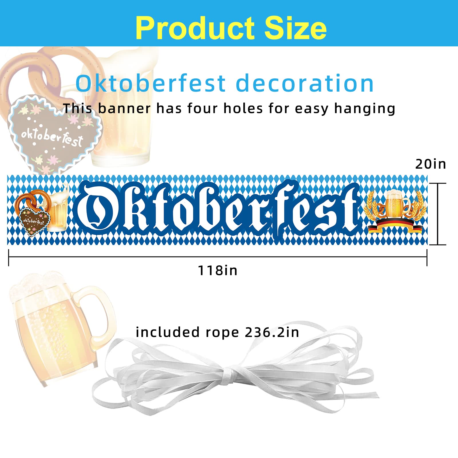 4-tlg Oktoberfest Deko Set - 2 Fächerflaggen 45x90cm + 2 Banner 130x30cm - Blau-Weiß Bayern Design