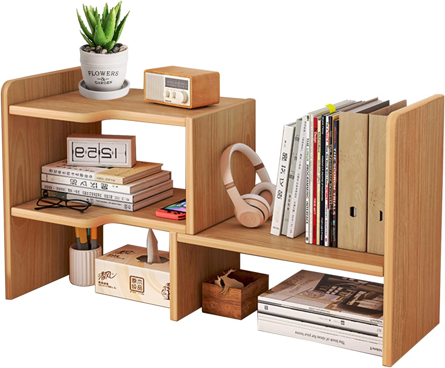 Verstellbares Desktop-Bücherregal - Holz Schreibtisch-Organizer Retro