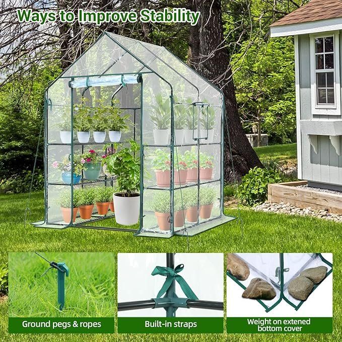 Skrskr Gewächshaus Abdeckung PVC - Wasserdichte Plane 143x73x195cm Für Tomaten & Pflanzen