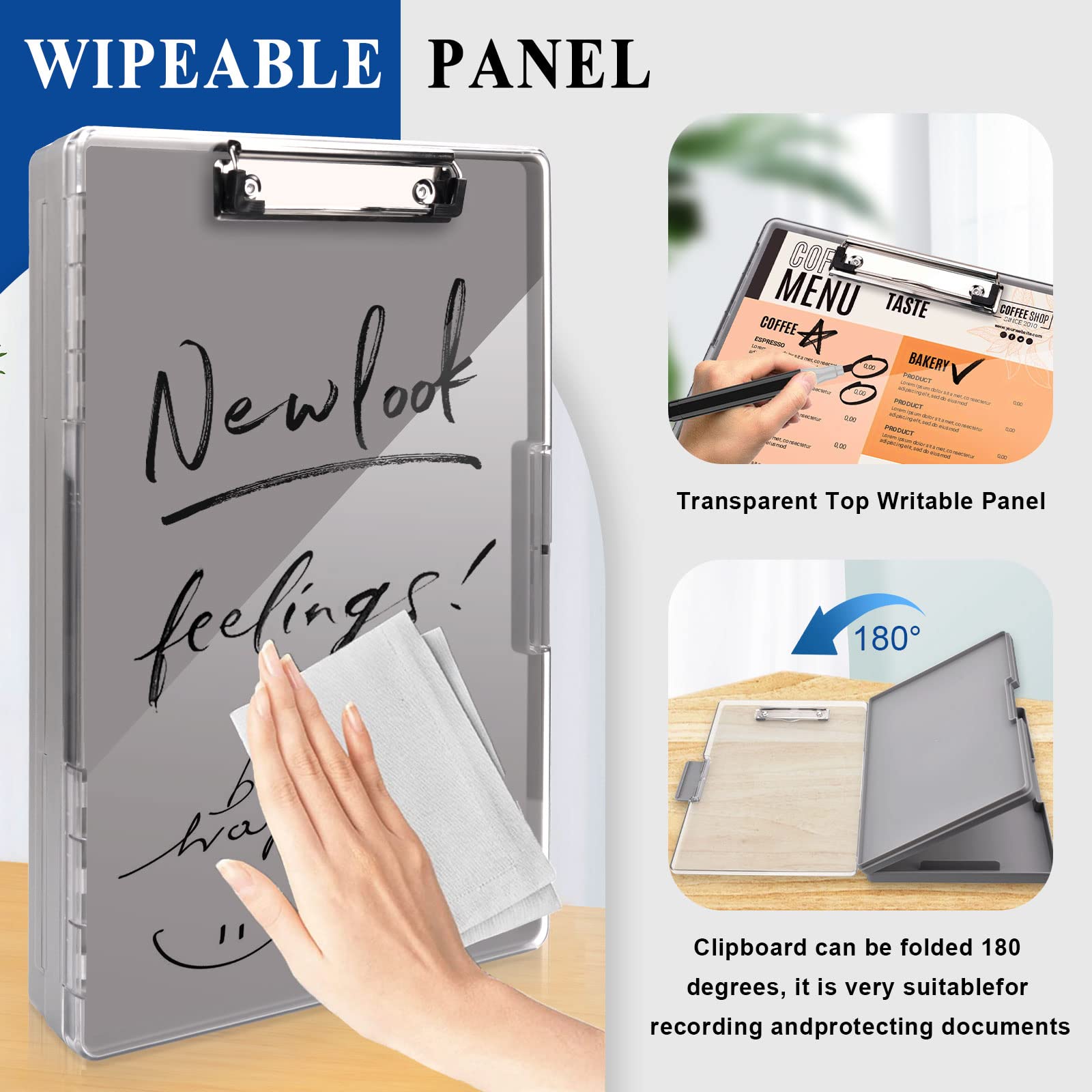 Mini Klemmbrett Set 2 Stück - 10x15cm Kunststoff Clipboard Mit Metalklemme - Blau