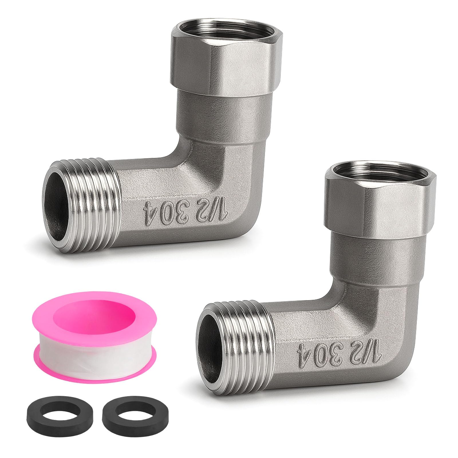 2 Stück 304 Edelstahl Winkelverschraubung 1/2 Zoll - 90 Grad Rohrwinkel Für Bewässerung