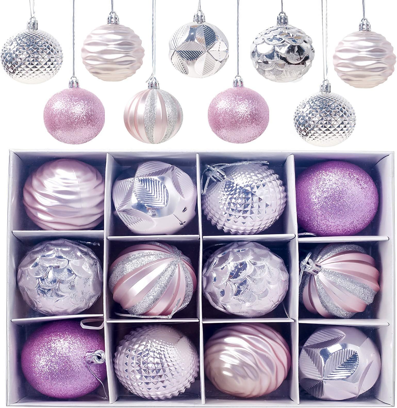 Mach deinen Weihnachtsbaum zum absoluten Hingucker! Dieses Set mit 12 Weihnachtskugeln in silber bringt sofort Festtagsstimmung. Jede Kugel hat 6cm Durchmesser und ist aus bruchfestem PVC - perfekt für Haushalte mit Kindern oder Haustieren. Die Mischung aus matten, glänzenden und glitzernden Oberflächen sieht super edel aus. Wasserdicht und nicht verblassend, kannst du sie Jahr für Jahr wieder verwenden. Einfach an den Baum hängen und dich an dem schönen Glanz erfreuen. Ob fürs Wohnzimmer, Büro oder als Gastgeschenk - diese Kugeln machen einfach alles festlicher!