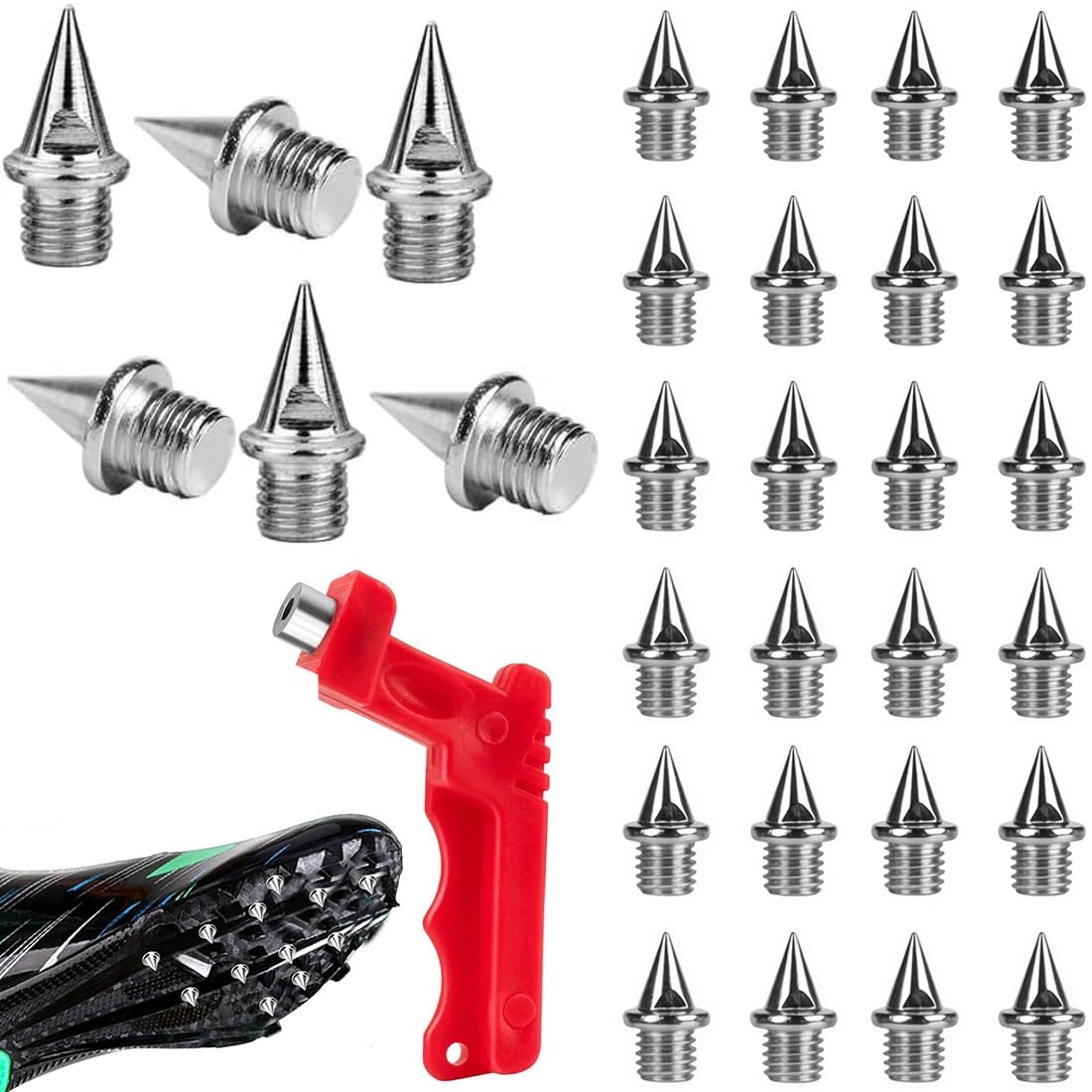 Immer den richtigen Grip! Diese 240 JUJNE Spikes in 7mm Größe bringen deine Laufschuhe wieder auf Vordermann. Aus robustem Stahl gefertigt, sorgen sie für perfekten Halt auf der Bahn oder im Gelände. Einfach mit dem mitgelieferten Schraubenzieher auswechseln - keine komplizierte Technik nötig. Die silbernen Spikes passen für die meisten Leichtathletik- und Sportschuhe. Im praktischen Großpack - ideal für Vereine, Schulen oder ambitionierte Läufer. Mehr Griff, mehr Sicherheit, bessere Leistung! Mit diesen Spikes läufst du einfach besser - probier's aus!