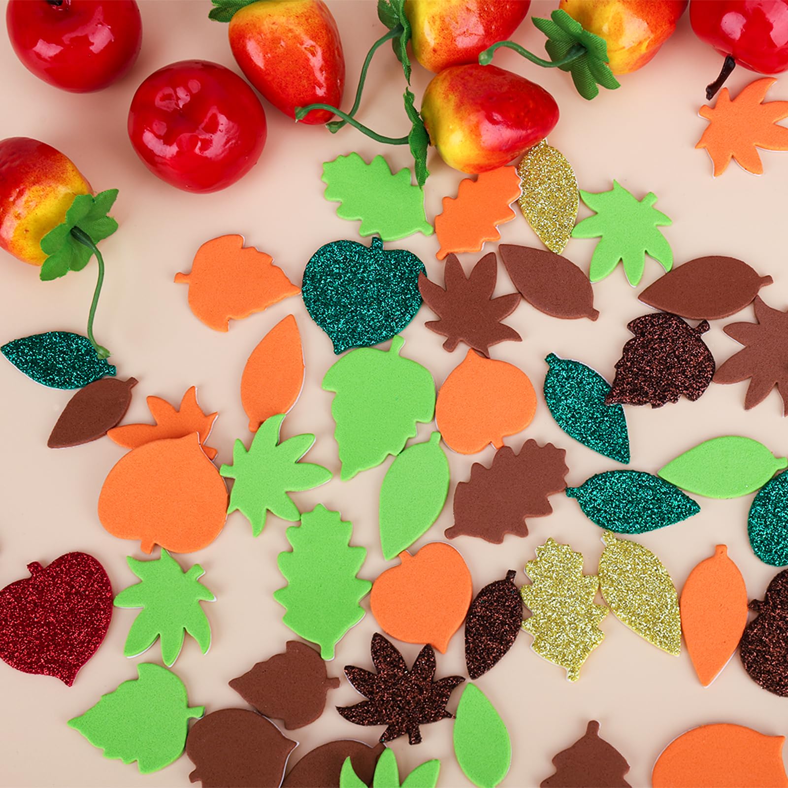 Herbstzeit ist Bastelzeit! Mit diesem riesigen Set von 500 herbstlichen Aufklebern kommt garantiert keine Langeweile auf. Die Sticker gibt es in 6 verschiedenen Blattformen und 7 knalligen Farben - von Ahorn über Pappel bis Kastanie ist alles dabei. Hergestellt aus robustem Moosgummi mit Glitzer-Oberfläche, der auch nach längerem Gebrauch nicht verblasst. Der Kleber auf der Rückseite hält super, aber die Sticker lassen sich trotzdem leicht abziehen und wieder anbringen. Perfekt für Thanksgiving-Dekoration, Grußkarten, Scrapbooking oder einfach zum Verschönern von Kinderzimmern. Ob für Mottopartys, Familienfeiern oder den Kindergarten - mit diesen niedlichen Blättern wird alles gleich viel herbstlicher. Deine Kinder (und du selbst!) werdet viel Spaß damit haben. Einfach aufkleben und den Herbst genießen!