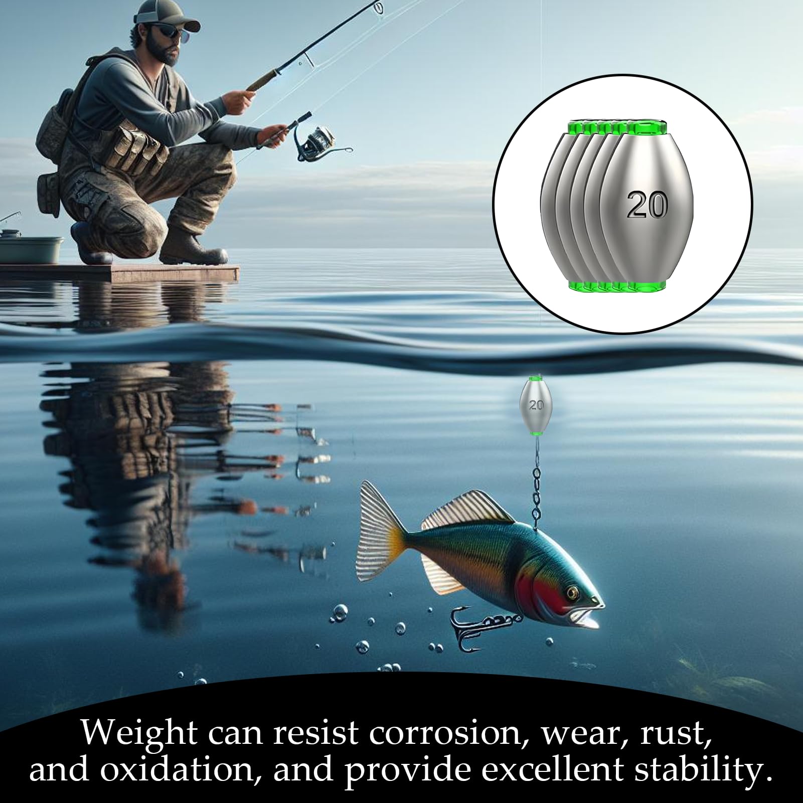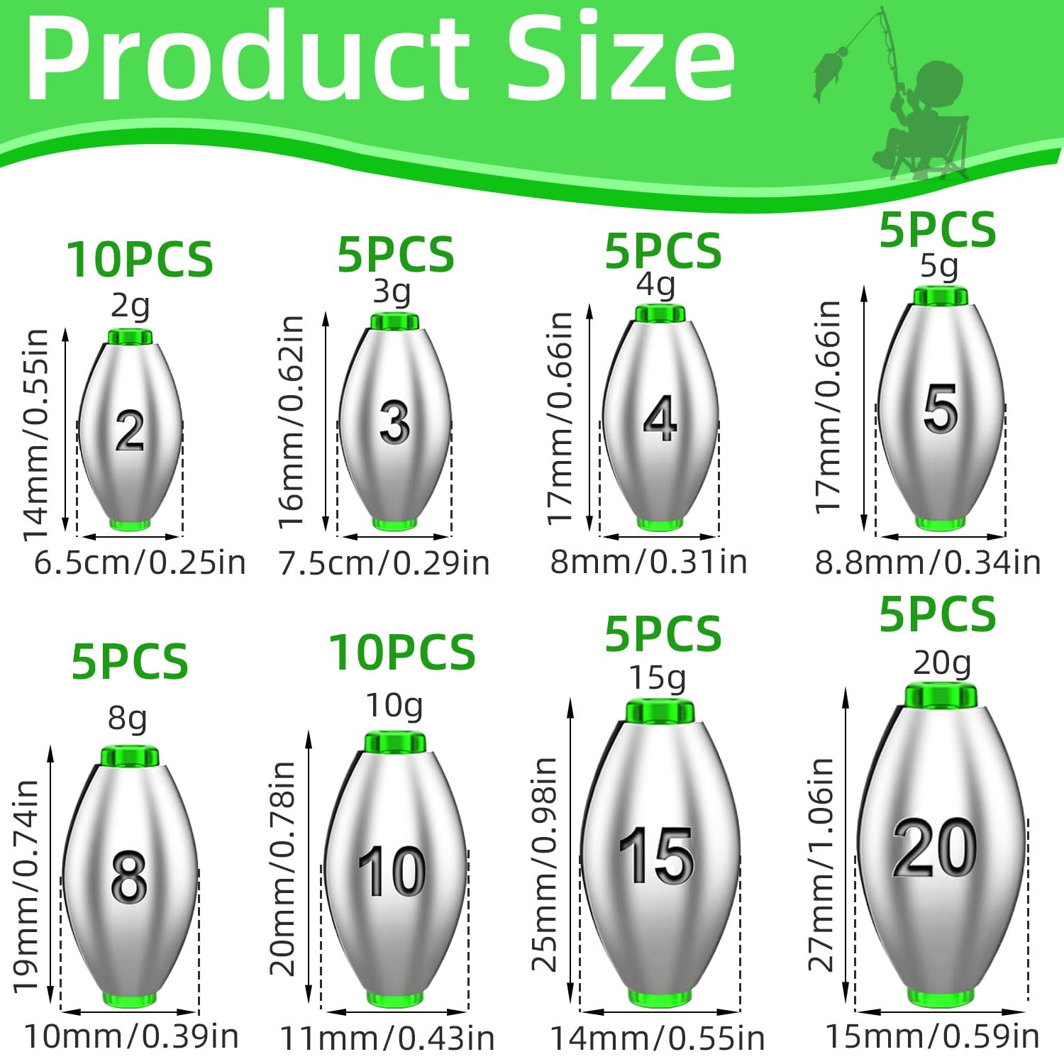 50 Stück Angelgewichte Set - 10 Größen 2g-12g, Oval, Rostfrei
