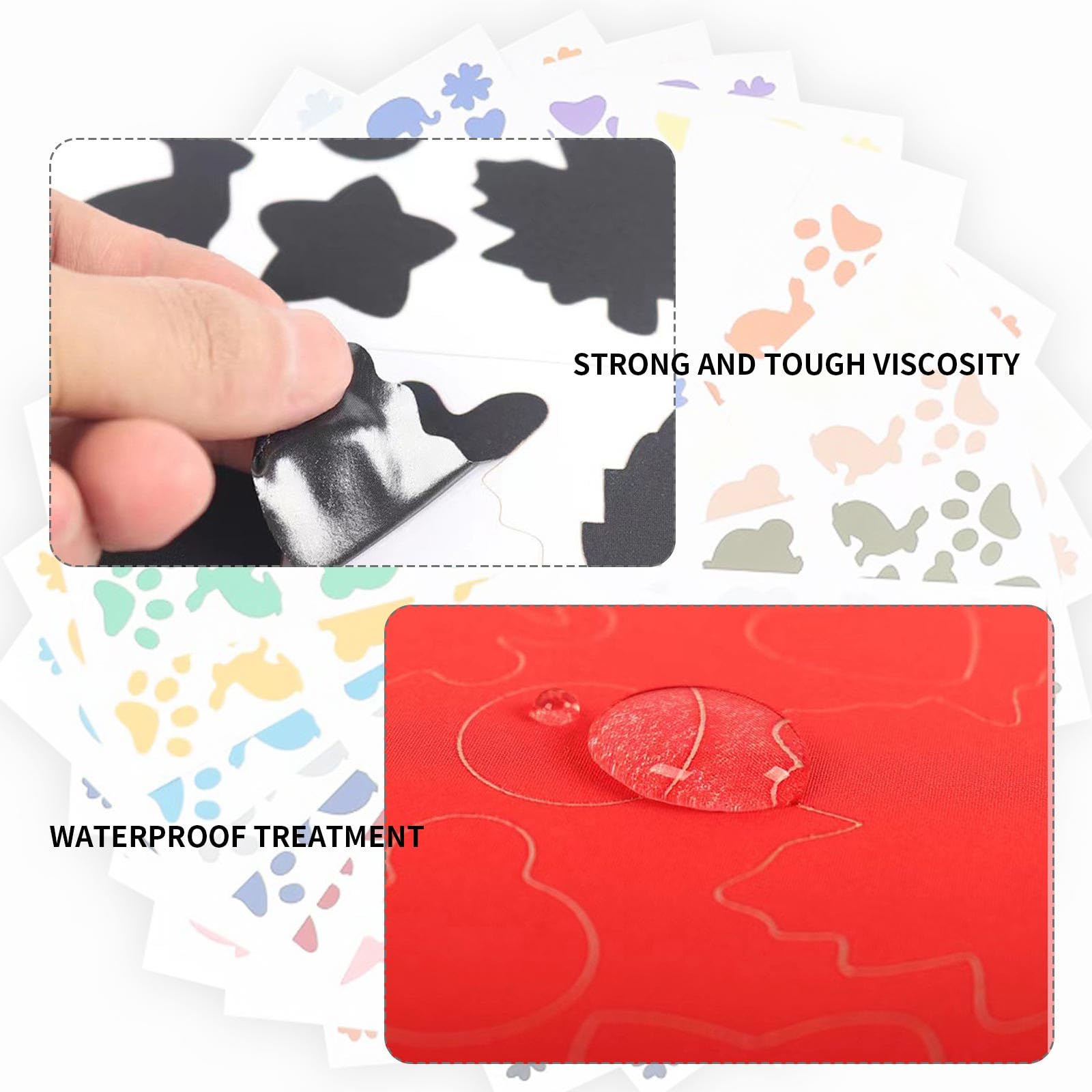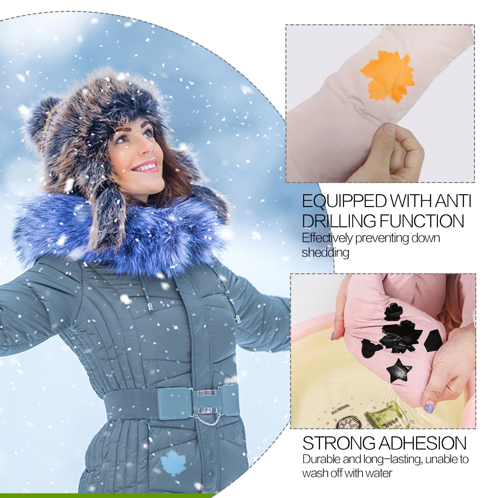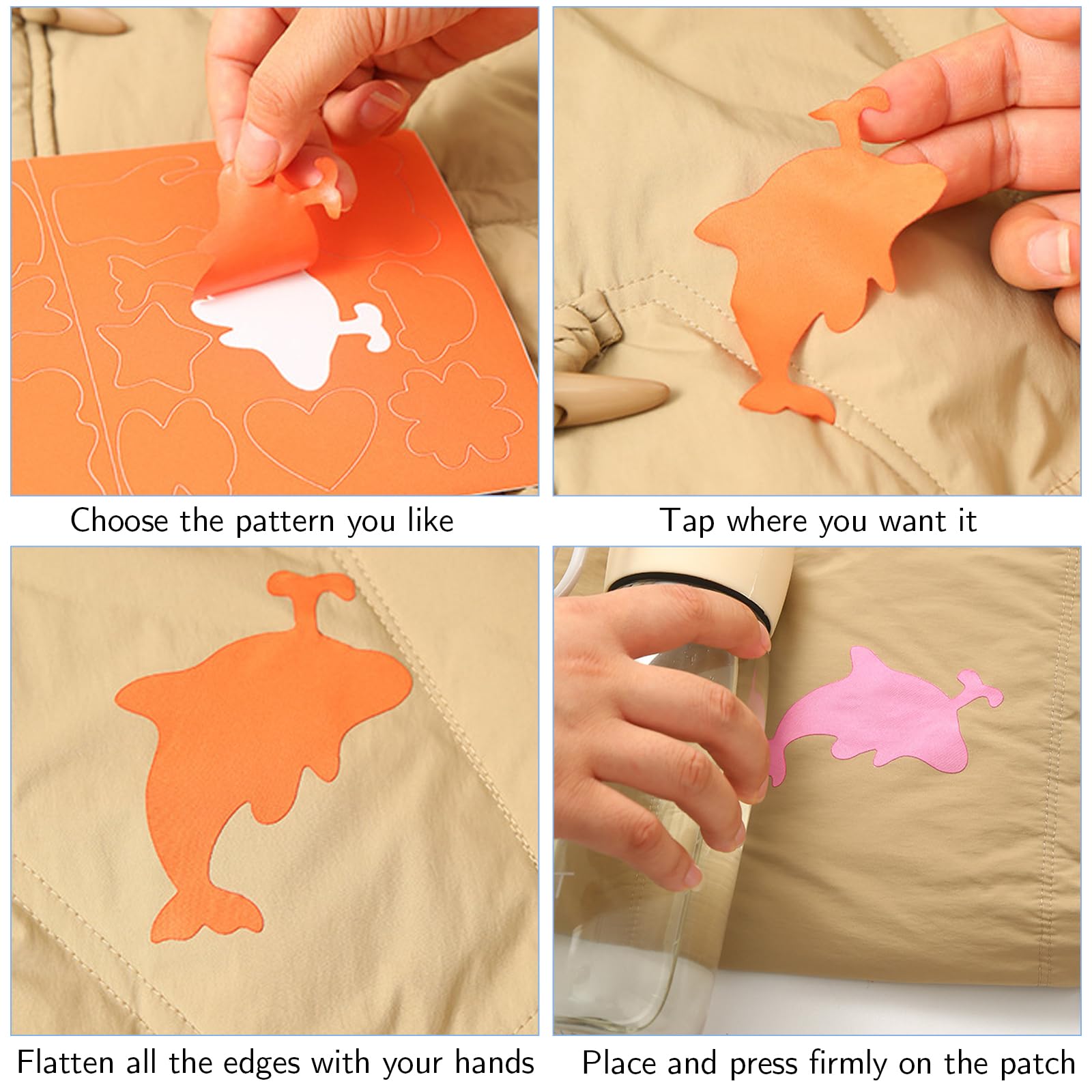 Hast du auch immer diese lästigen Löcher in der Lieblingsjeans oder in der teuren Daunenjacke? Mit diesem Reparaturset von LuxStellar ist das kein Problem mehr! 10 bunte Flicken in 5 verschiedenen Farben und zwei süßen Formen (Herz und Stern) warten darauf, deine Kleidung zu retten.\n\nDas Beste: Du musst nicht nähen können! Die Flicken sind selbstklebend - einfach Schutzfolie abziehen, auf das Loch drücken und fertig. Für extra Halt kannst du sie noch kurz mit dem Bügeleisen fixieren, aber notwendig ist das nicht. Und das Material ist wasserfest, hält also auch Regen und Waschgängen stand.\n\nJeder Flicken ist etwa 2,5 x 2 cm groß und 0,6 mm dick - perfekt für kleine Risse und Löcher. Aus hochwertigem Polyester gefertigt, das sich nicht wellt oder löst. Ob Jeans, Jacken, Rucksäcke oder sogar Kissen - hier findest du für jeden Schaden den passenden Flicken.\n\nSuper praktisch für unterwegs, für Kinderkleidung die ständig kaputt geht, oder einfach um alten Klamotten neuen Pepp zu verleihen. Ein Must-Have für jeden Haushalt - denn wer hat nicht mal was zu flicken?