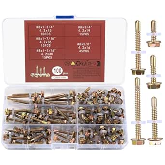 Perfekte Schrauben für Dach- und Blecharbeiten! Dieses Set enthält 100 selbstschneidende Blechschrauben in 4,8x19mm mit integrierten EPDM-Dichtscheiben. Aus hochfestem Kohlenstoffstahl mit Verzinkung - rostfrei und langlebig. Die scharfe Bohrspitze durchdringt Metallbleche ohne Vorzubohren (nicht für Aluminium geeignet!). Sechskantkopf für hohes Drehmoment ohne Rutschen. Inklusive 2x M8 Sechskant-Bits für Elektrowerkzeuge. Ideal für Trapezbleche, Wellplatten, Dachrinnen und Stahlkonstruktionen. Die Dichtscheiben sorgen für absolute Wasserdichtheit - perfekt für Außenbereiche. Einfache Montage mit Akkuschrauber oder Schraubenschlüssel. Professionelle Qualität für Heimwerker und Profis!