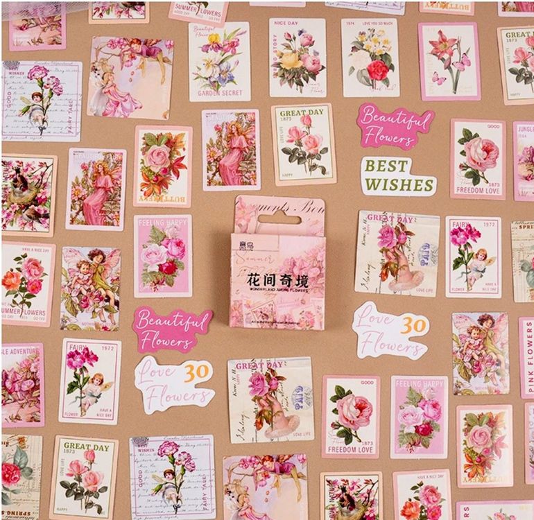 200 Stück Blumen Aufkleber - PET Material Wasserdicht