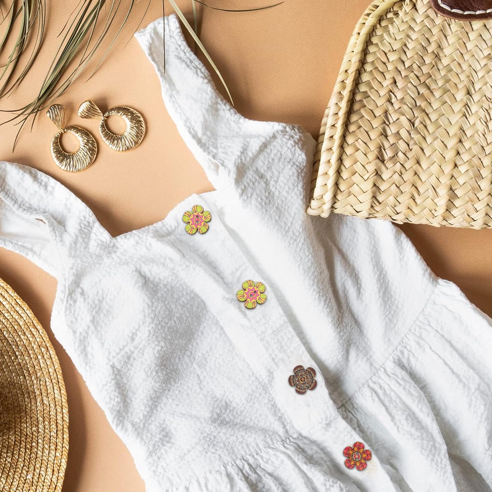 200 Stück Bunte Holzknöpfe - Retro Blumen Muster Für DIY Nähen