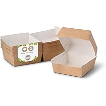 Hey, wenn du Burger, Sandwiches oder andere Leckereien verpacken willst - diese Burgerboxen aus Kraftkarton sind perfekt! 50 Stück im Pack, Größe XL (130x130x110 mm). Schon vorgefaltet, musst du also nix zusammenbauen. Sind auslaufsicher, auch bei fettigen oder nassen Speisen. Können in die Mikrowelle zum Aufwärmen. Aus 100% recyclebarem Kraftkarton, umweltfreundlicher als Schaumstoff. Super für Restaurants, Imbisse, Catering oder private Feiern. Einfach befüllen, zuklappen und fertig! Damit bleibt alles frisch und sauber. Einfach mal bestellen - praktischer geht's kaum!