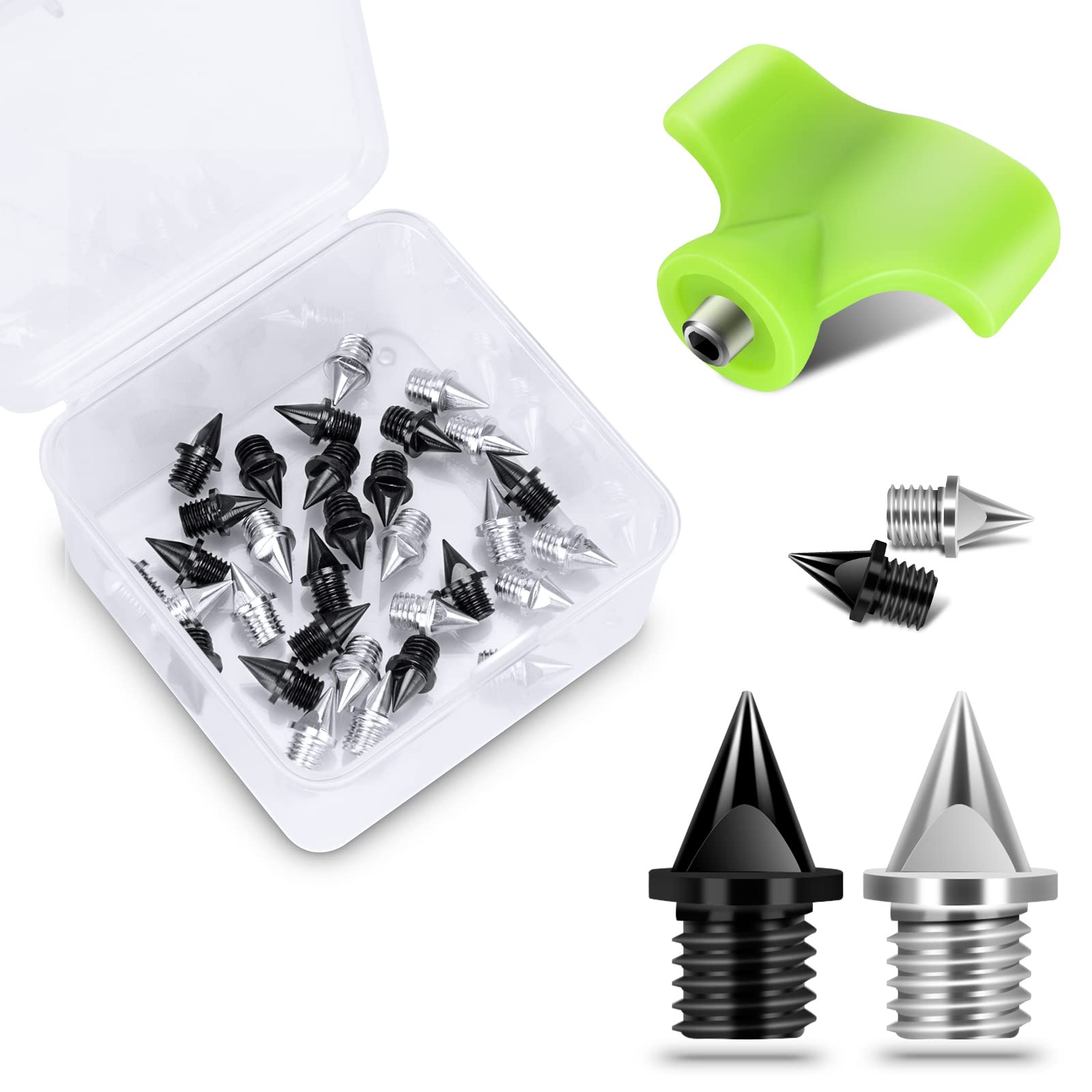 Perfektes Spike-Set für alle Läufer! 60 Stück leichte Carbon-Spikes plus praktischer Schraubenschlüssel - alles was du brauchst. Mit 1/4 Zoll (6,35mm) Länge und 5mm Gewindedurchmesser passen sie in die meisten Laufschuhe. Jeder Spike wiegt nur 0,45g - ultraleicht! Aus robustem Kohlenstoffstahl, rostfrei und langlebig. Mehr Grip auf der Bahn, bessere Traktion beim Sprint. Einfach mit dem beiliegenden Werkzeug wechseln. Ideal für Leichtathletik, Cross Country oder Sprint-Training. Die grüne Farbe sieht dazu noch richtig sportlich aus. In praktischer Aufbewahrungsbox - immer ordentlich und griffbereit!