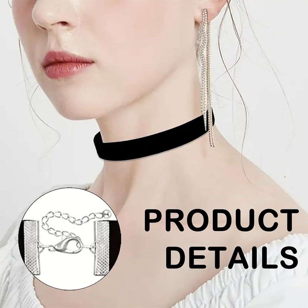 Dieses 6er Set schwarzer Samt-Choker ist einfach unwiderstehlich! Jedes Halsband ist aus weichem, glattem Samt gefertigt und liegt angenehm auf der Haut ohne zu reizen. Die verstellbaren Verschlüsse sorgen für perfekten Sitz bei jeder Halsgröße. Ob für Partys, Tanzabende, Halloween oder Cosplay - diese Choker verleihen jedem Outfit eine geheimnisvolle, elegante Note. Super kombinierbar mit anderen Ketten oder solo als Statement-Piece. Die robuste Verarbeitung garantiert Langlebigkeit auch bei häufigem Tragen. Ein tolles Geschenk für Freundinnen oder einfach für dich selbst - dieses Set bereichert deine Schmucksammlung garantiert. Mach dich bereit für Komplimente!