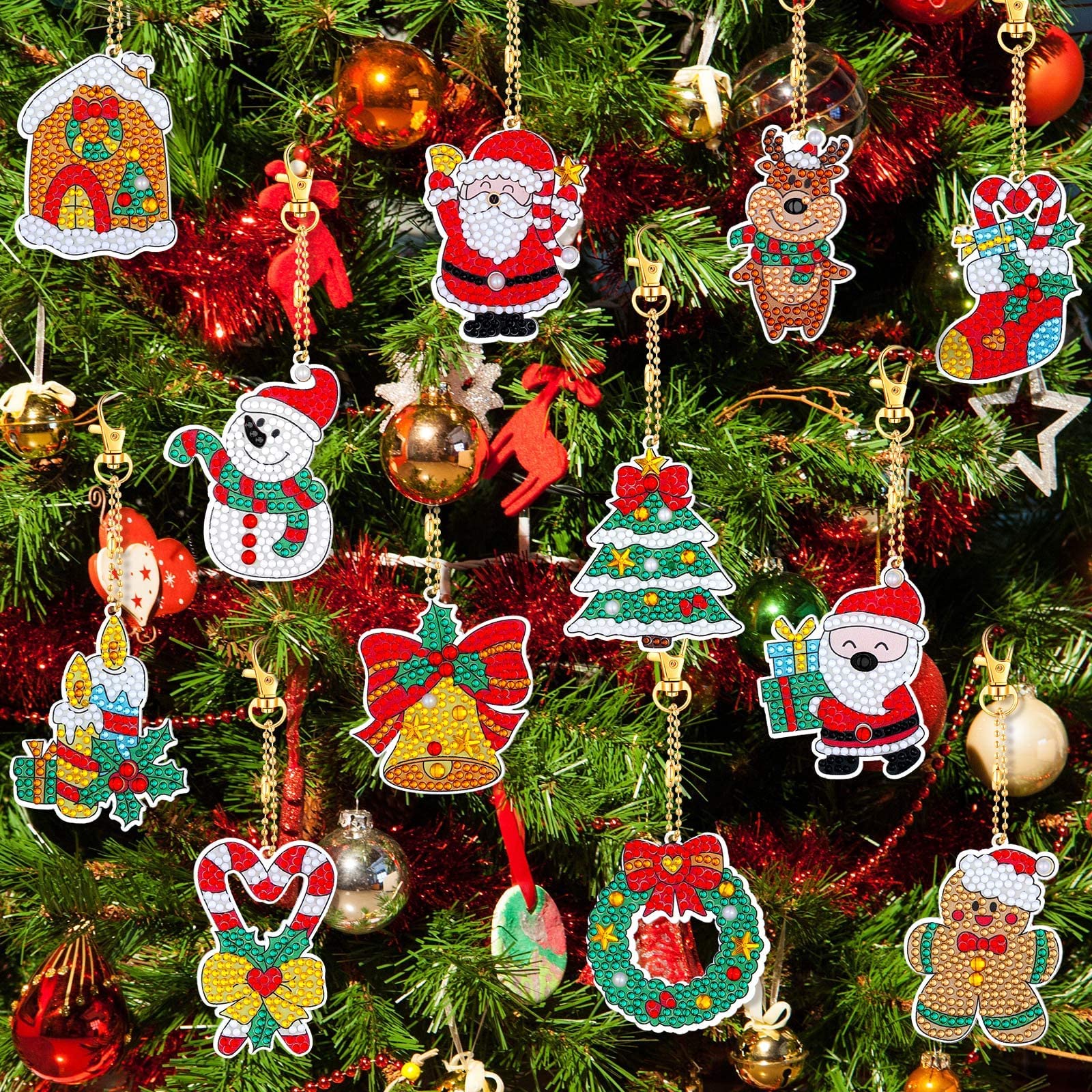 12 Stück Diamond Painting Weihnachten - DIY Weihnachtsanhänger Mit Strasssteinen