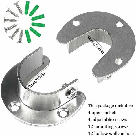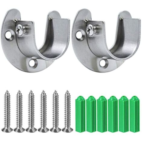 2 Stück Edelstahl Kleiderstangen Halterungen 34mm Weiß - U-förmige Endstützen Mit Schrauben