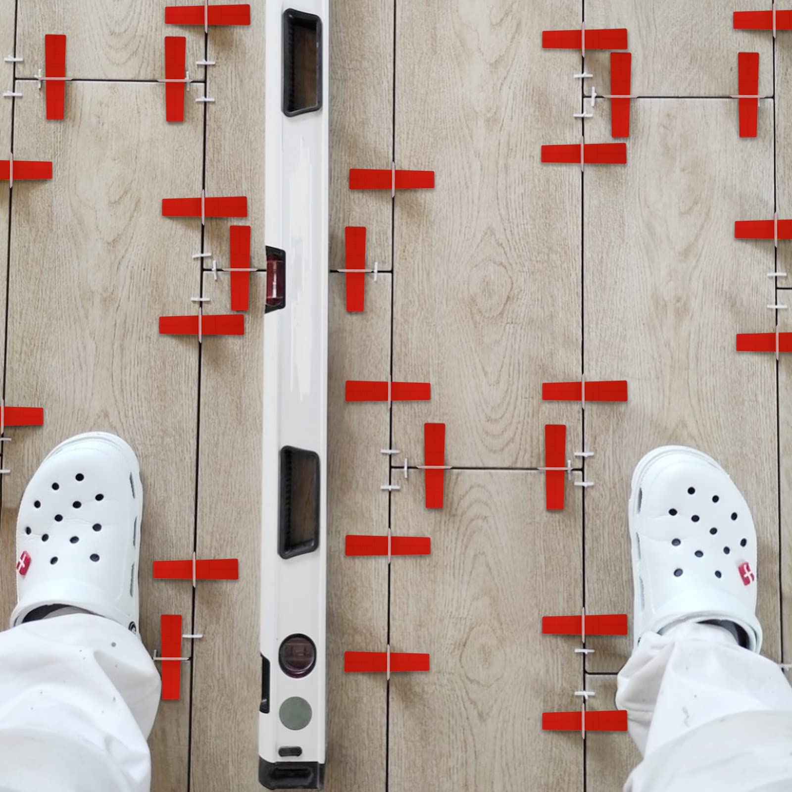 Für alle, die Fliesen verlegen, sind diese Nivellierkeile ein absoluter Game-Changer! Im Set sind 400 Stück dabei - mehr als genug für auch größere Projekte. Das Besondere: Sie sind wiederverwendbar! Aus langlebigem Material gefertigt, halten sie ewig und du musst nicht ständig neue kaufen. Sie passen perfekt zu 1/8, 1/16 und 1/32 Zoll Abstandshaltern und sorgen so für millimetergenau gleiche Fugen. Die Handhabung ist super einfach - einfach einklicken und die Fliesen sind perfekt ausgerichtet. Egal ob du Heimwerker oder Profi bist - mit diesen Keilen sehen deine Fliesenarbeiten immer top aus! Keine schiegen Fliesen mehr, keine ungleichen Fugen. Einfach ein Muss für jede Fliesenverlegung! Die Qualität ist wirklich hochwertig, die Keile brechen nicht und sitzen bombenfest. Damit wird Fliesenlegen zum Kinderspiel!