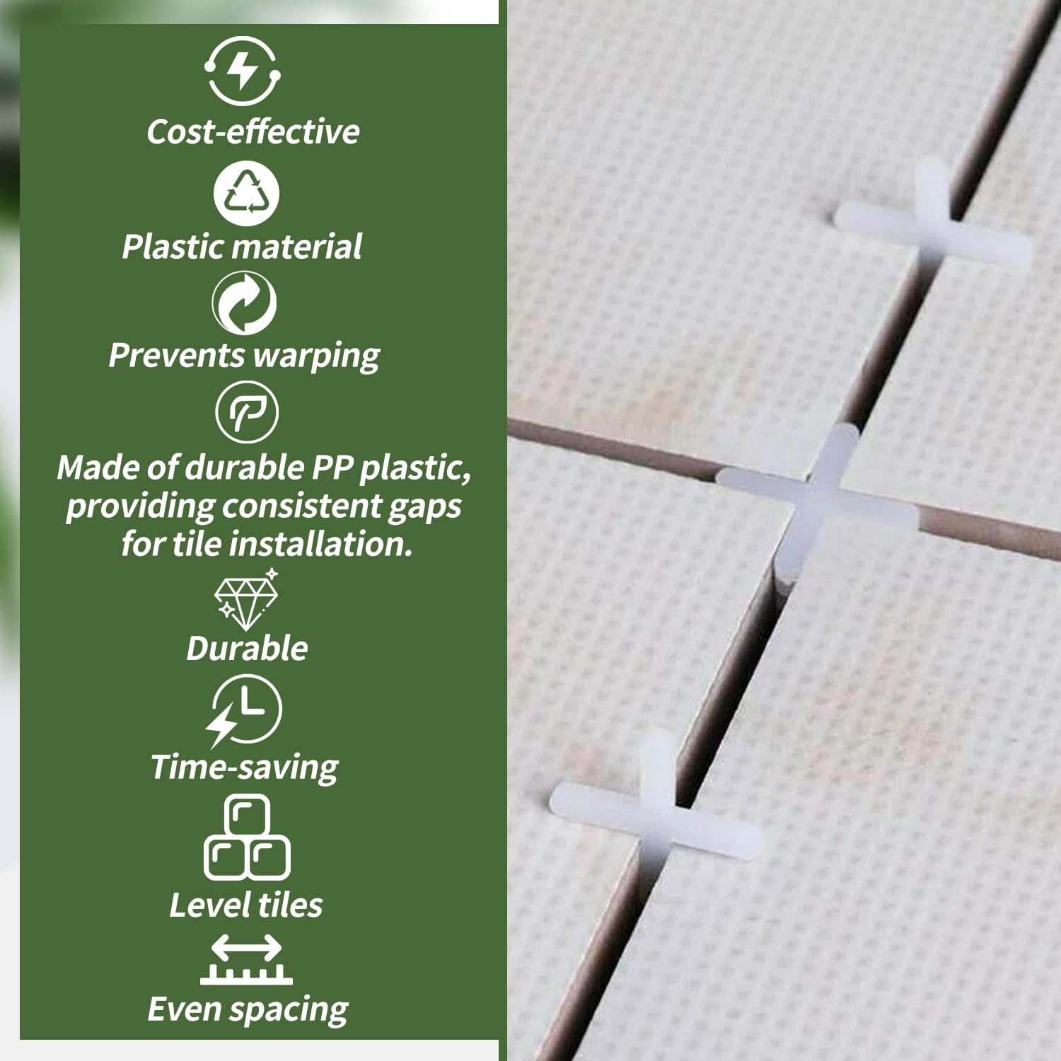 Professionelle Fliesenverlegung war noch nie so einfach! Diese 500 weißen Fliesenkreuze in 3mm Stärke garantieren perfekt gleichmäßige Fugen. Aus robustem HDPE-Kunststoff - splitterfrei, wasserresistent und wiederverwendbar. Einfache Handhabung: einfach zwischen die Fliesen stecken, andrücken bis es 'klickt' - fertig! Spart bis zu 50% Montagezeit gegenüber herkömmlichen Methoden. Universal einsetzbar für Wand- und Bodenfliesen, Mosaike oder Terrassen. Die Kreuzform ermöglicht präzises Ausrichten in allen Richtungen. Dein unsichtbarer Helfer für makellose Fliesenarbeiten - ob im Bad, Küche oder Wohnbereich!