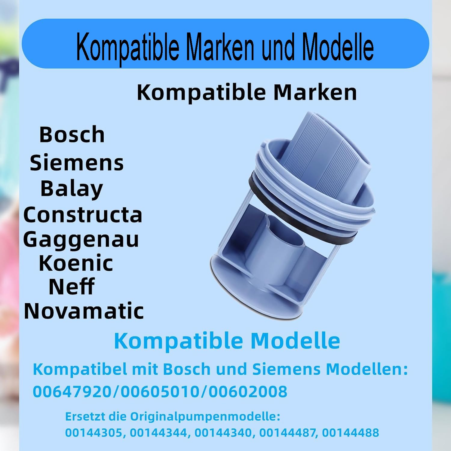 2 Stück Flusensieb Für Waschmaschine - Ersatzsieb Für Bosch, Siemens, Constructa, Neff