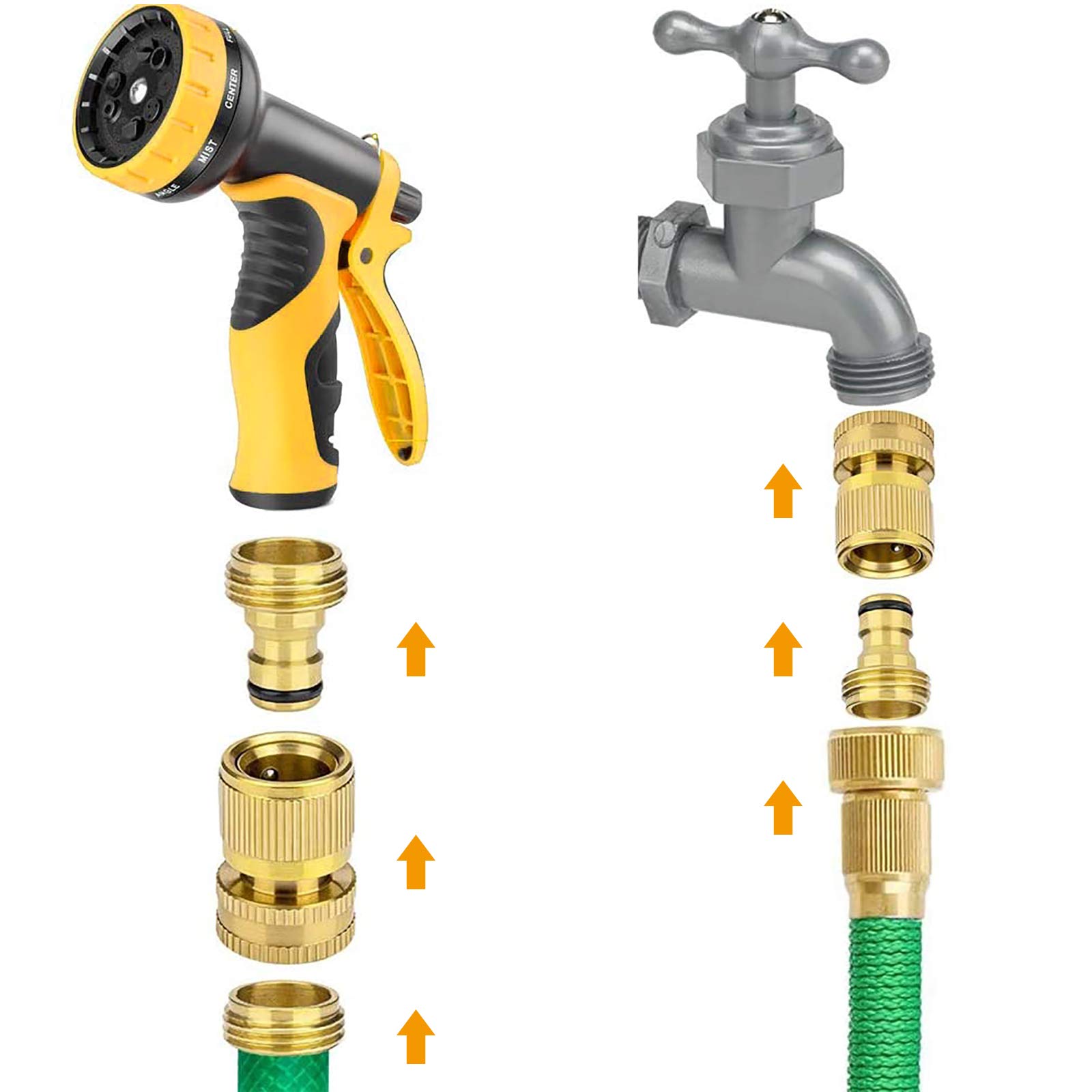 Endlich kein geknickter Schlauch mehr! Diese beiden hochwertigen Drehgelenk-Verbinder aus Messing machen deine Gartenarbeit viel einfacher. Mit 3/4 Zoll Innengewinde auf Außengewinde passen sie perfekt zu den meisten Standard-Gartenschläuchen und Wasserhähnen. Das geniale 180° schwenkbare Design ermöglicht dir, den Schlauch in jede Richtung zu bewegen, ohne dass er knickt oder abknickt. So fließt das Wasser immer optimal und du bewässerst deine Pflanzen viel effizienter. Die Messing-Qualität ist richtig robust, rostfrei und korrosionsbeständig - hält viele Jahre. Einfache Installation komplett ohne Werkzeug! Einfach aufschrauben und schon kann's losgehen. Perfekt für Rasenbewässerung, Blumenbeete, Autowaschen oder jede andere Outdoor-Aufgabe. Im Lieferumfang sind sogar 2 Dichtungen und Rohmaterialband dabei. Mach deine Gartenarbeit zum Kinderspiel!