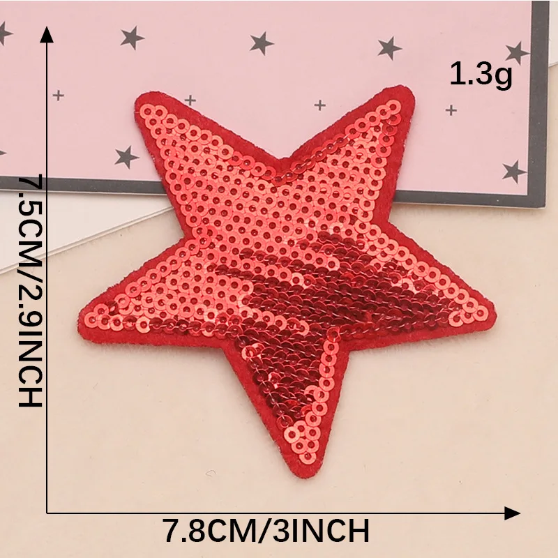10 Stück Glitzer Stern Aufnäher 8cm - Pailletten Sterne Für Kleidung & DIY