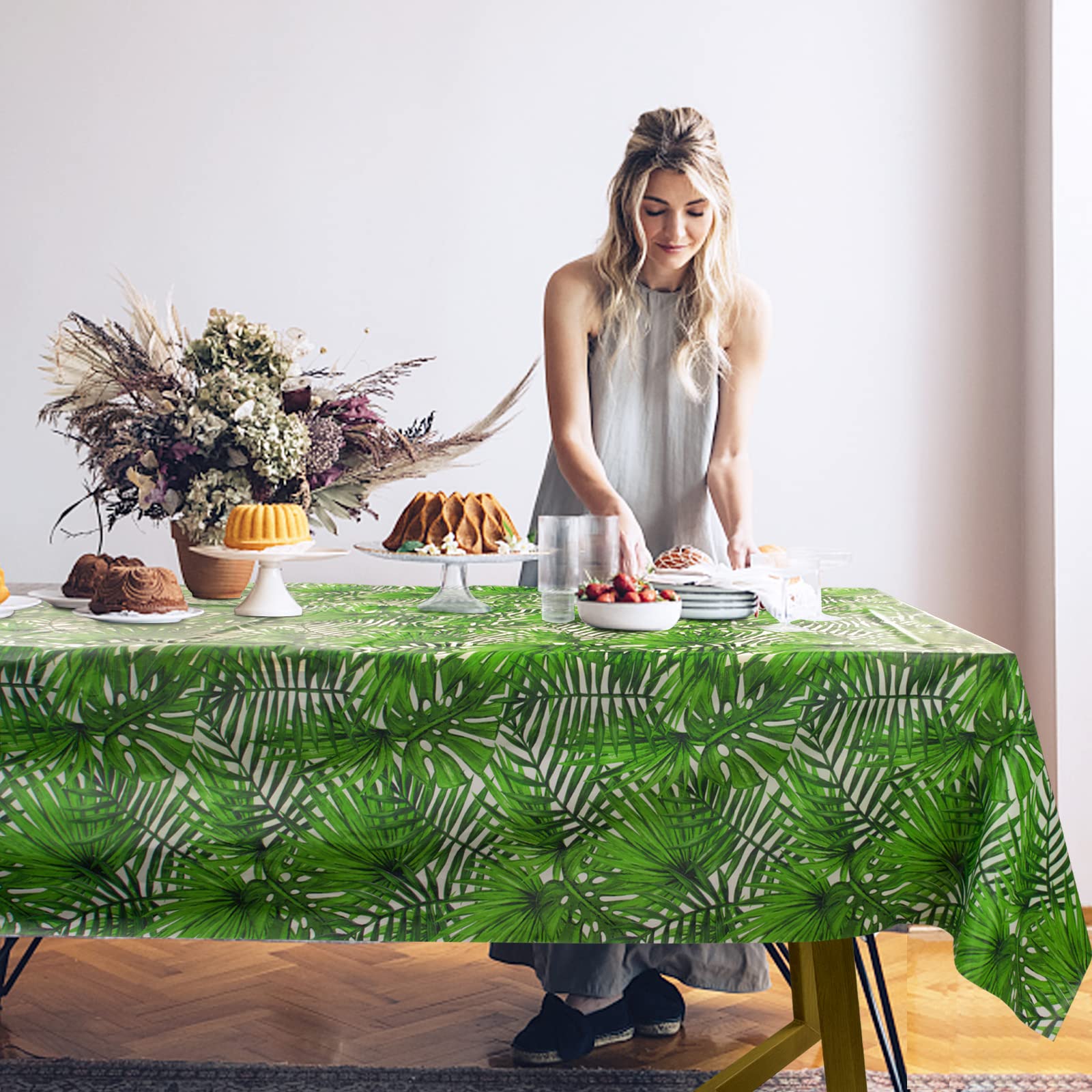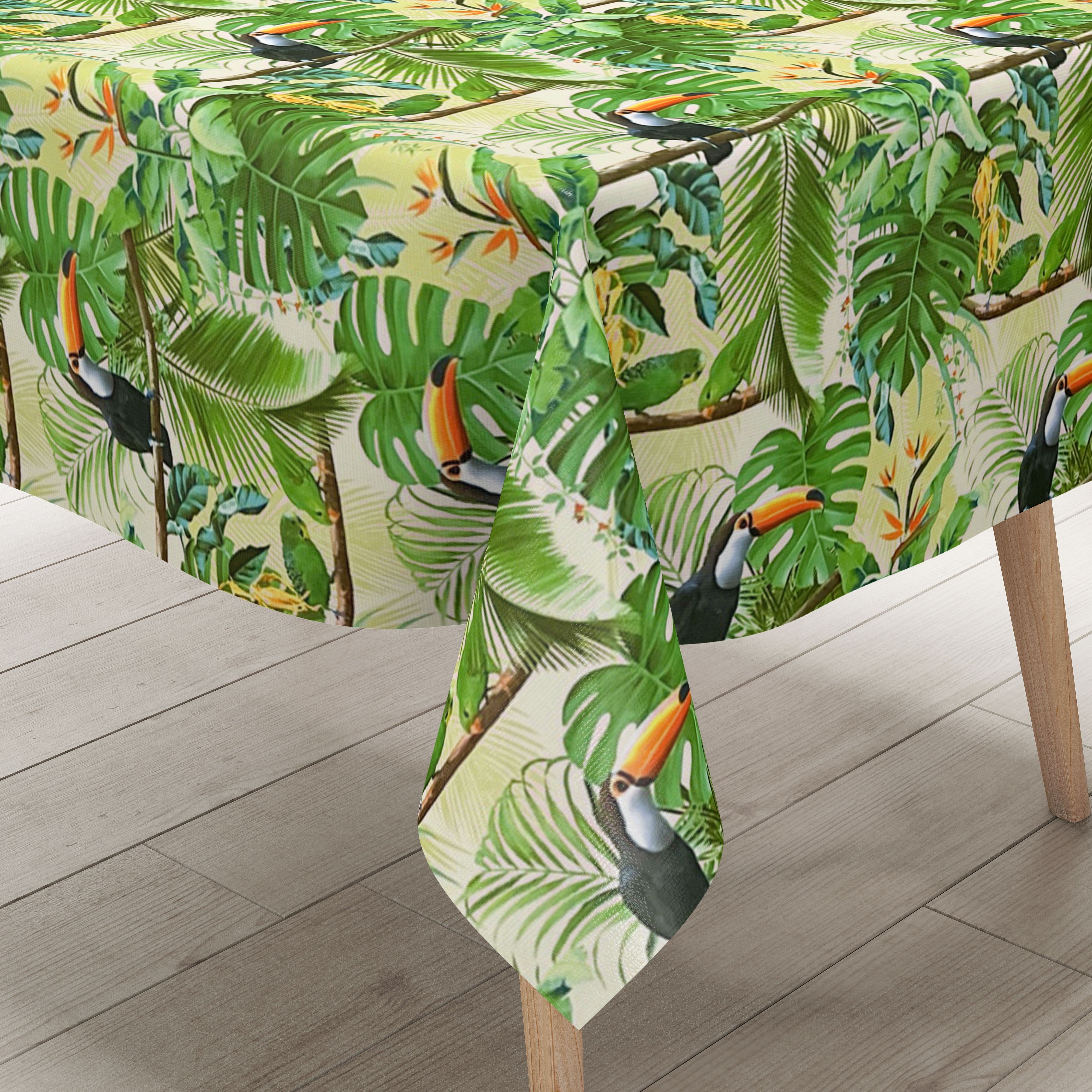 4 Stück Grünes Moos Tischtuch - Dschungel Design, 220x130 Cm, Wasserfest, Für Mottopartys