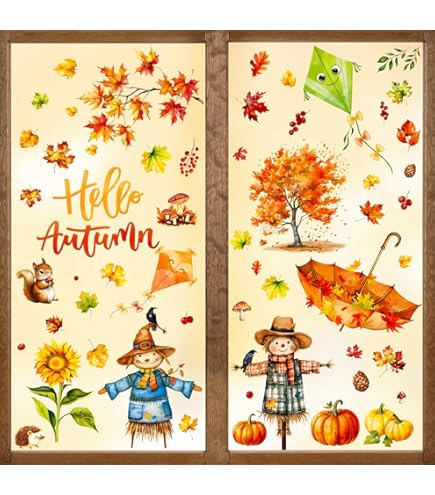 Thanksgiving Fensteraufkleber 84 Stück - Herbst Deko Mit Ahornblättern & Kürbissen